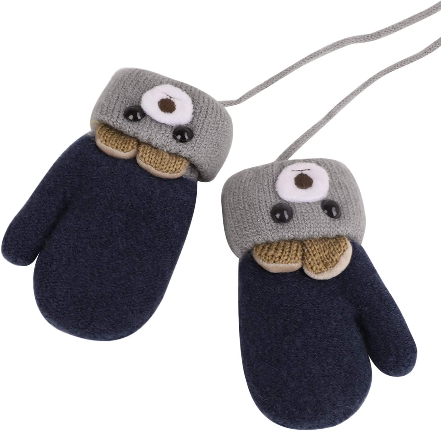 Cartoon Bear/Pet Canine Animal Child Youngsters Toddler Mittens with String, Extremely Thick Heat Fleece Lining, Stretchy & Comfy