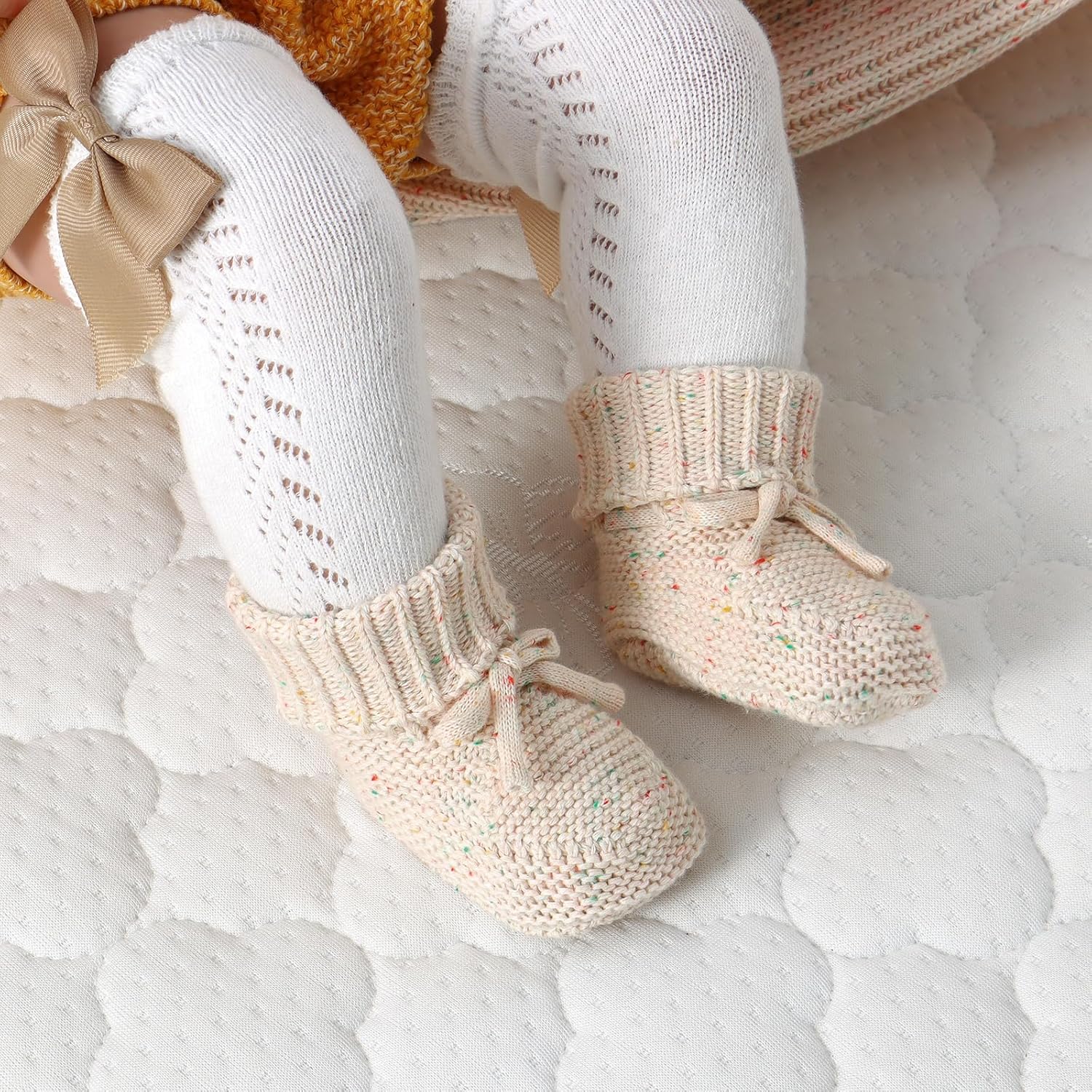 100% Cotton: this child first outing socks footwear and hat set is made from premium cotton, very gentle and breathable, nice for delicate pores and skin and provides infants cozy emotions.