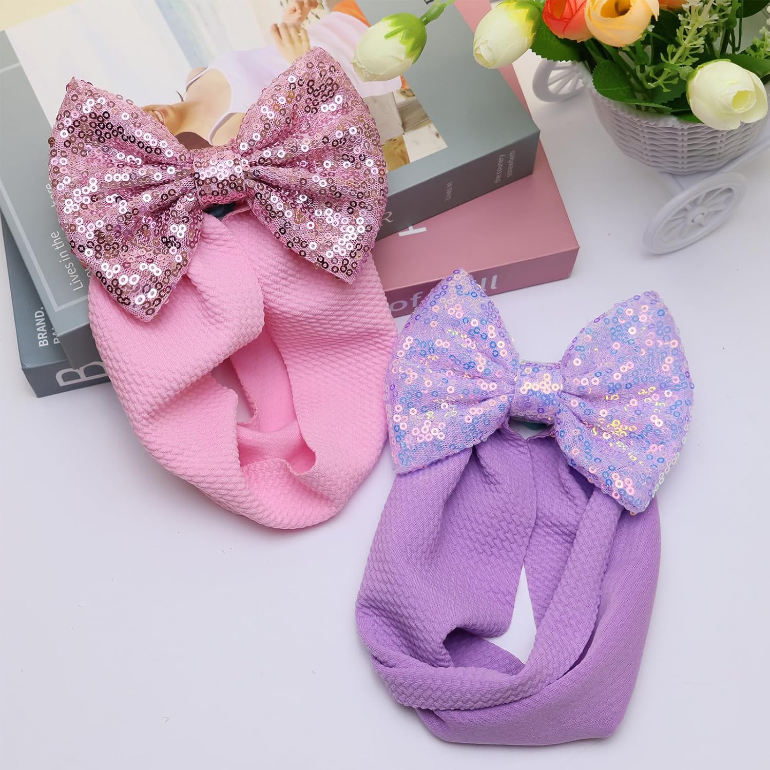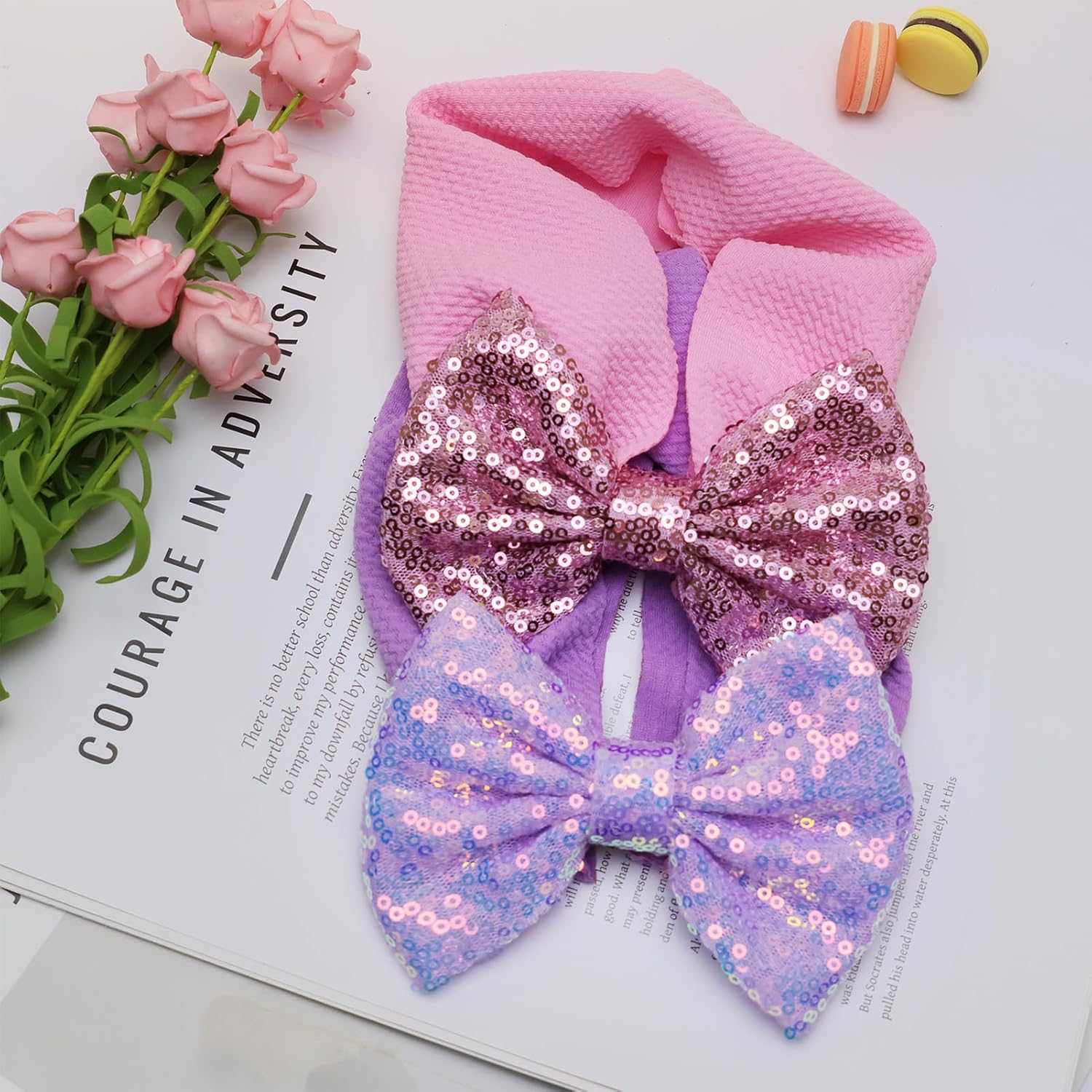 7” Sequin Bow Child Headbands, Purple Hair Bow Pink Child Lady Elastic Extensive Hairbands for Child Women New child and Toddler Hair Equipment Reward
