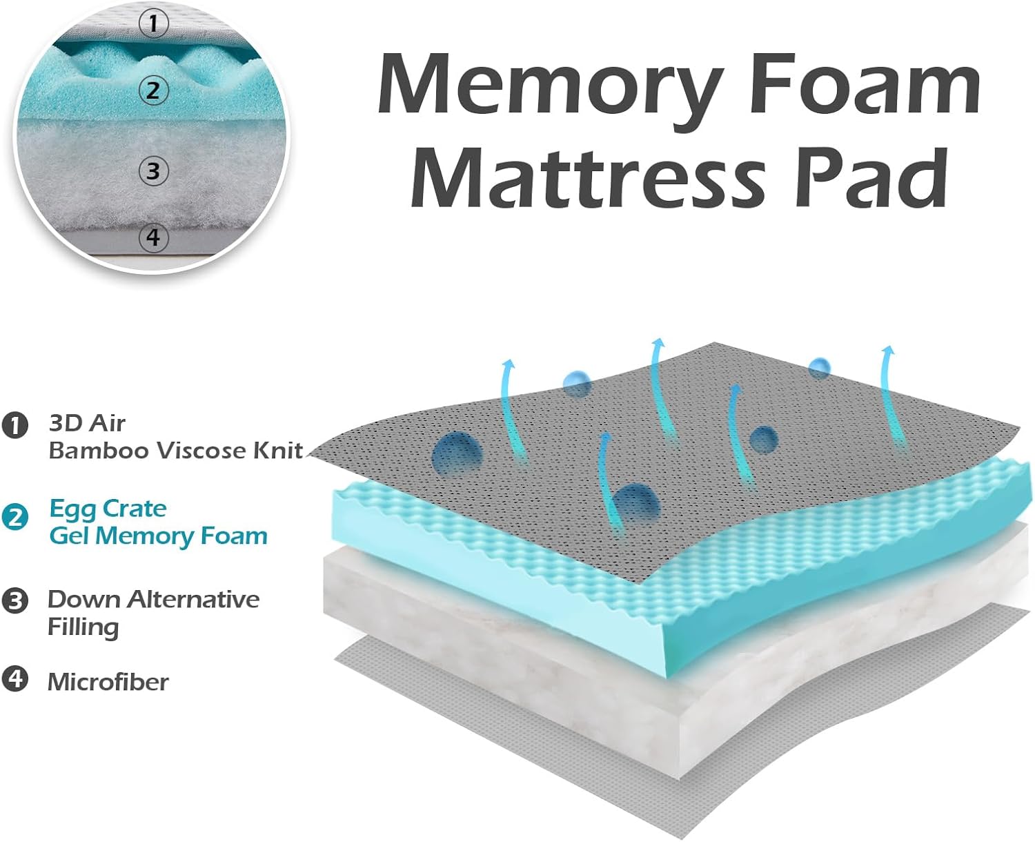 PREMIUM SURFACE: This mattress topper incorporates a 3D premium floor that wicks away night time sweat. Mixed with the cooling gel infused within the reminiscence foam, it offers a breathable and comfy sleep setting.