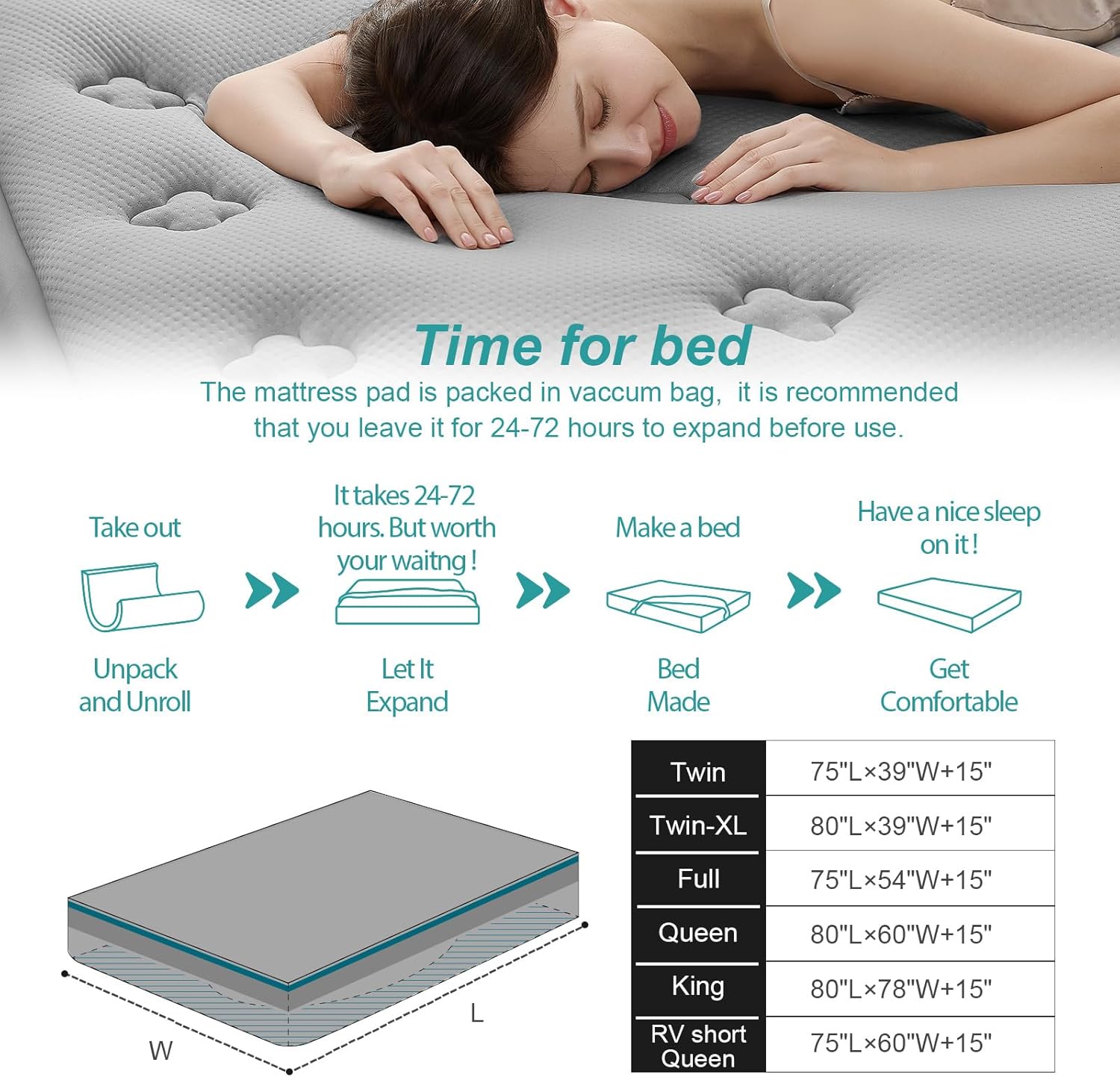 CARE INSTRUCTIONS: Hansleep mattress topper comes vacuum-packed and will seem thinner upon unpacking. Please enable it two days to regain its form and thickness.