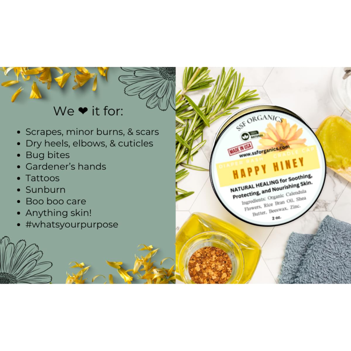 100% Pure. Mild, Protected and Efficient. Made with Therapeutic and Soothing Herbs and Oils. Perfect For Little Hineys, Butt Can Be Used For Any Rashy, Uncooked, and Delicate Space.