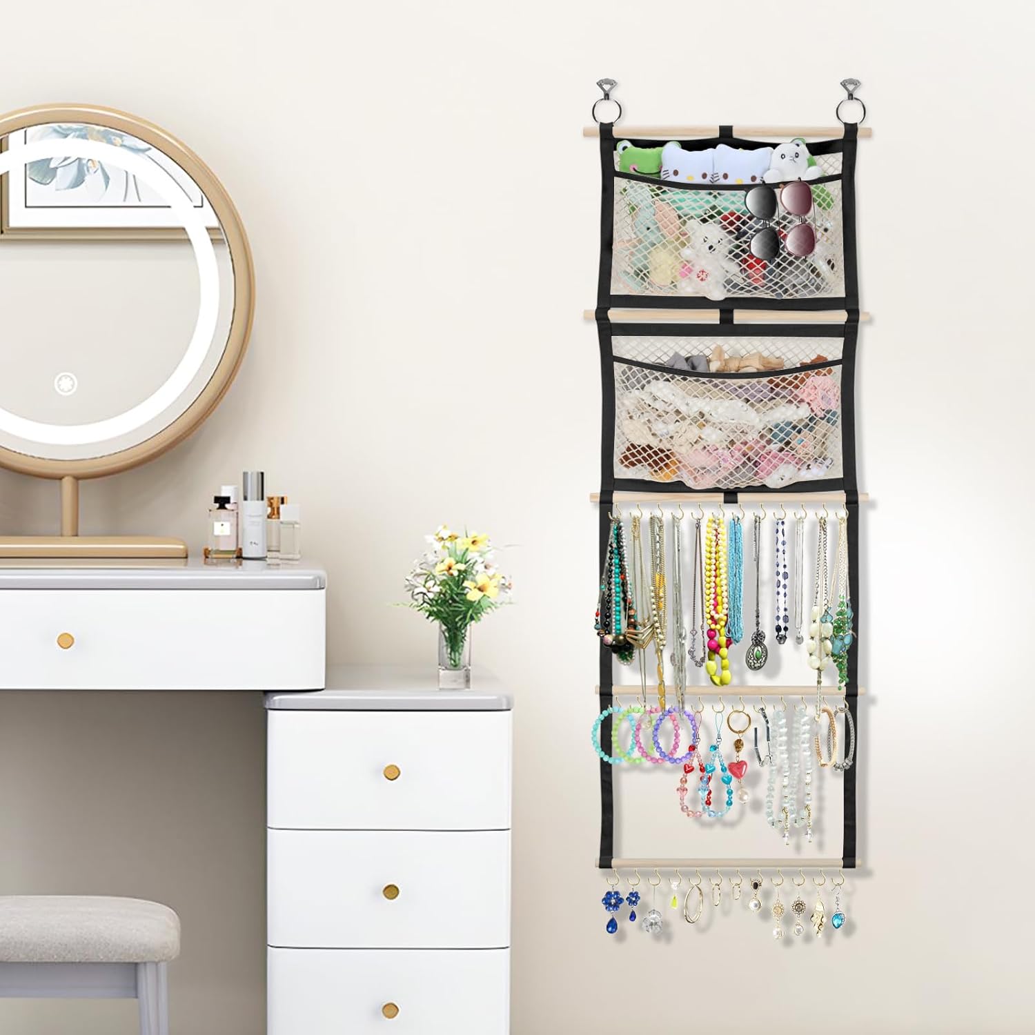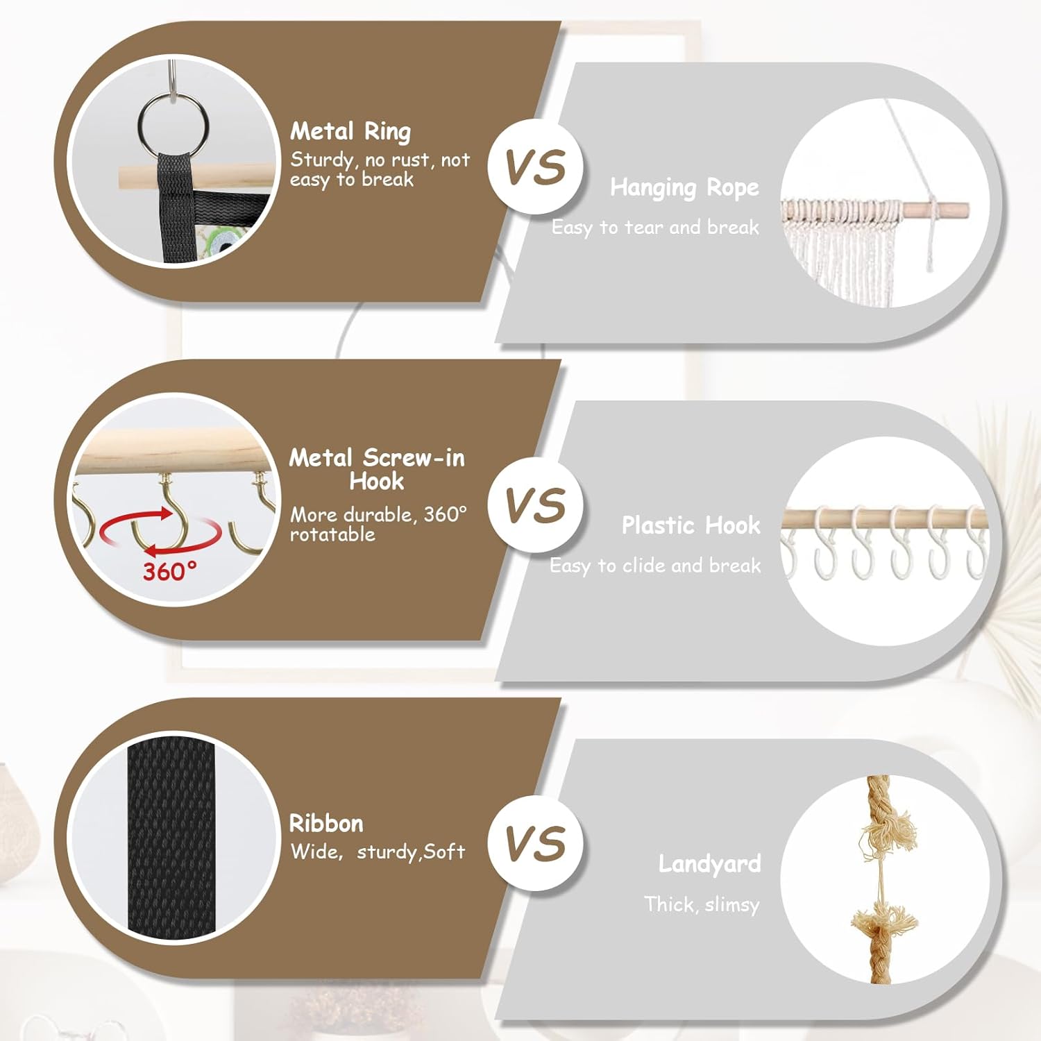 【Premium High quality Supplies & Preferrred Dimension】: Crafted from high-quality cotton canvas and supported by sturdy pine wooden dowels with out cracking or deforming, this black hair bow organizer for women is sturdy, ensures giant weight capability and long-lasting sturdiness. Sized at 17 x 50.4 inches, headband organizer gives ample area to prepare all your child’s hair equipment—preferrred for households with twins or a number of little ones.