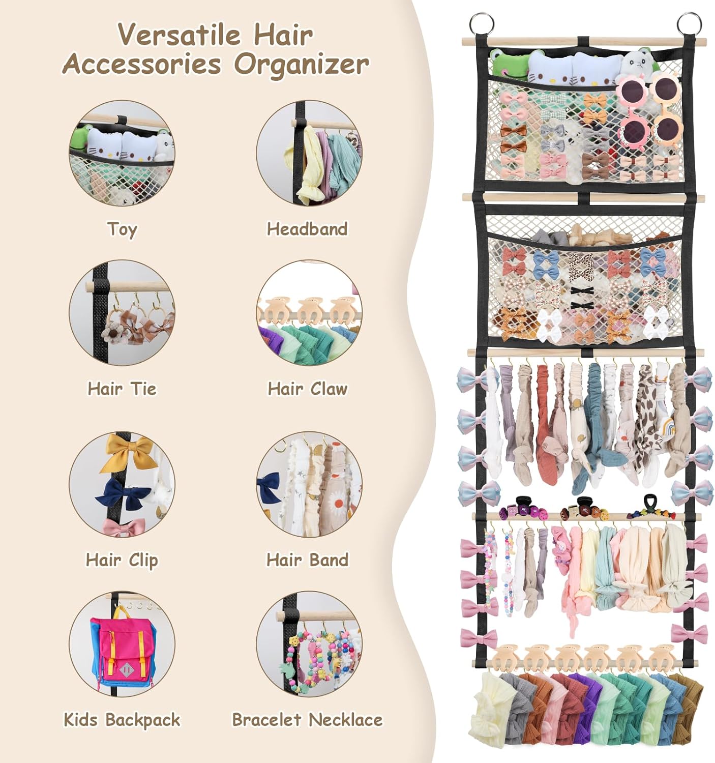【Massive Storage Capability & Versatile Design】 (Headbands Not Included): ihaness black headband holder organizer is designed to retailer as much as 70 headbands with 36 sturdy metallic hooks throughout 3 rows (every hook holds as much as 2 headbands). Plus, bow holder for women hair bows options 2 giant mesh pockets for small hair equipment or child objects. Say goodbye to messy drawers and howdy to quick access—all the things is neatly organized and inside attain!