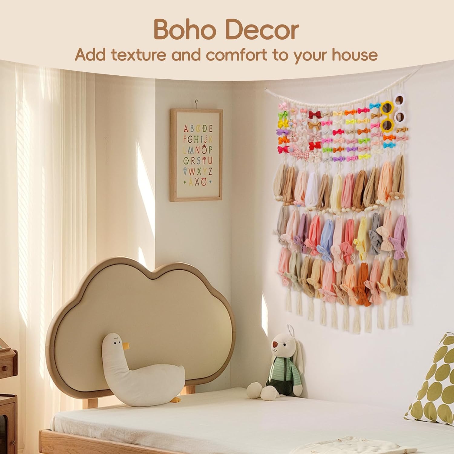 Boho fashion nursery decor: Bow holder for women hair bows is the proper mixture of performance and aesthetic. It not solely retains child woman hair equipment organized properly, but in addition seems tremendous cute as an exquisite room decor piece with a bohemian vibe when hung up. Distinctive braided design with cotton rope provides candy feeling to the nursery