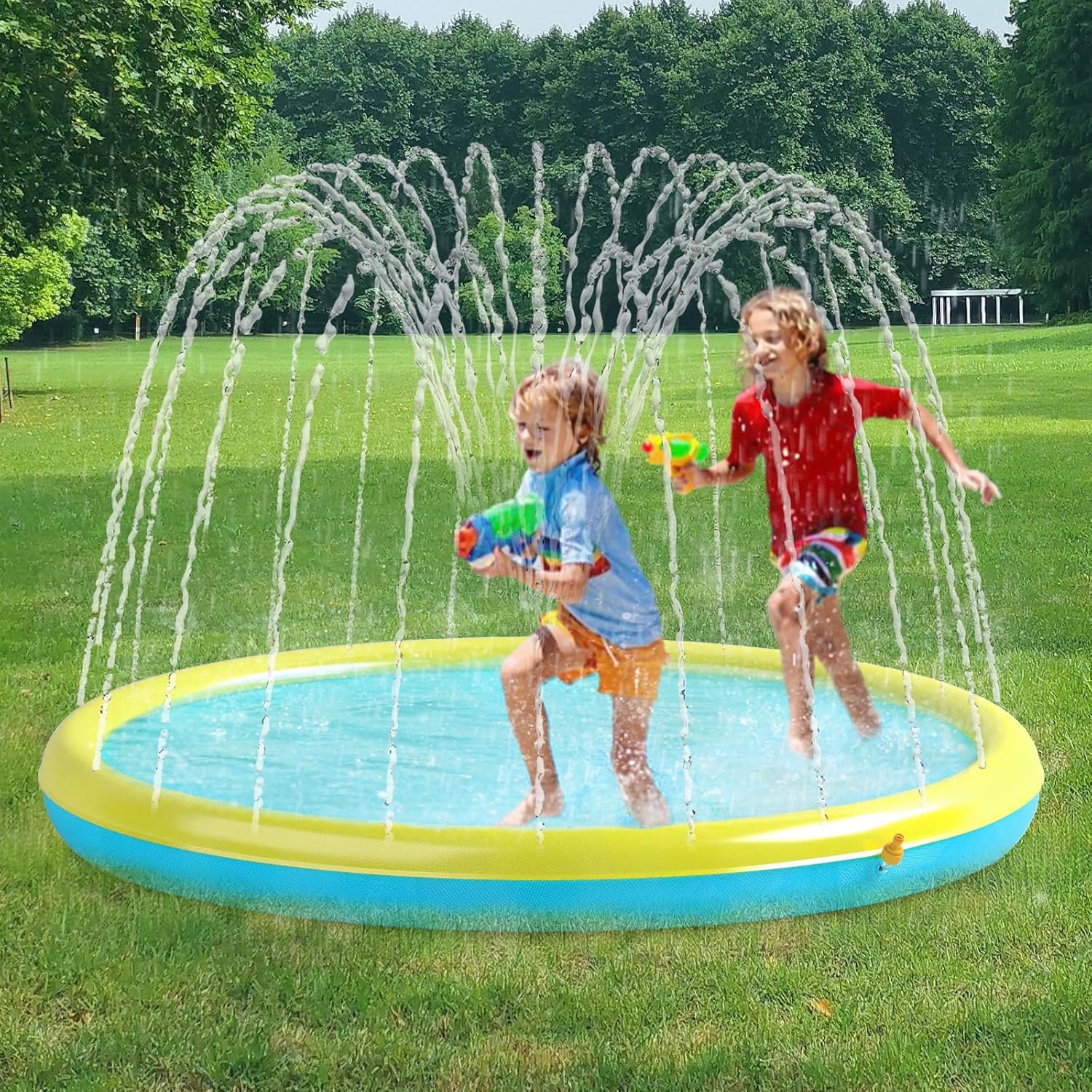 Kids ought to use it underneath the supervision of adults.Don’t put mats on arduous and uneven surfaces.Don’t carry any sharp objects when coming into.Don’t elevate or transfer the sprinkle when it’s stuffed with water, as a result of the burden of water simply makes it burst.Advocate chopping the nails of your pets which might keep away from scratching children and cut back the damage and tear of the splash pad.Examine the product earlier than use. If there are any issues, please be in contact with us.