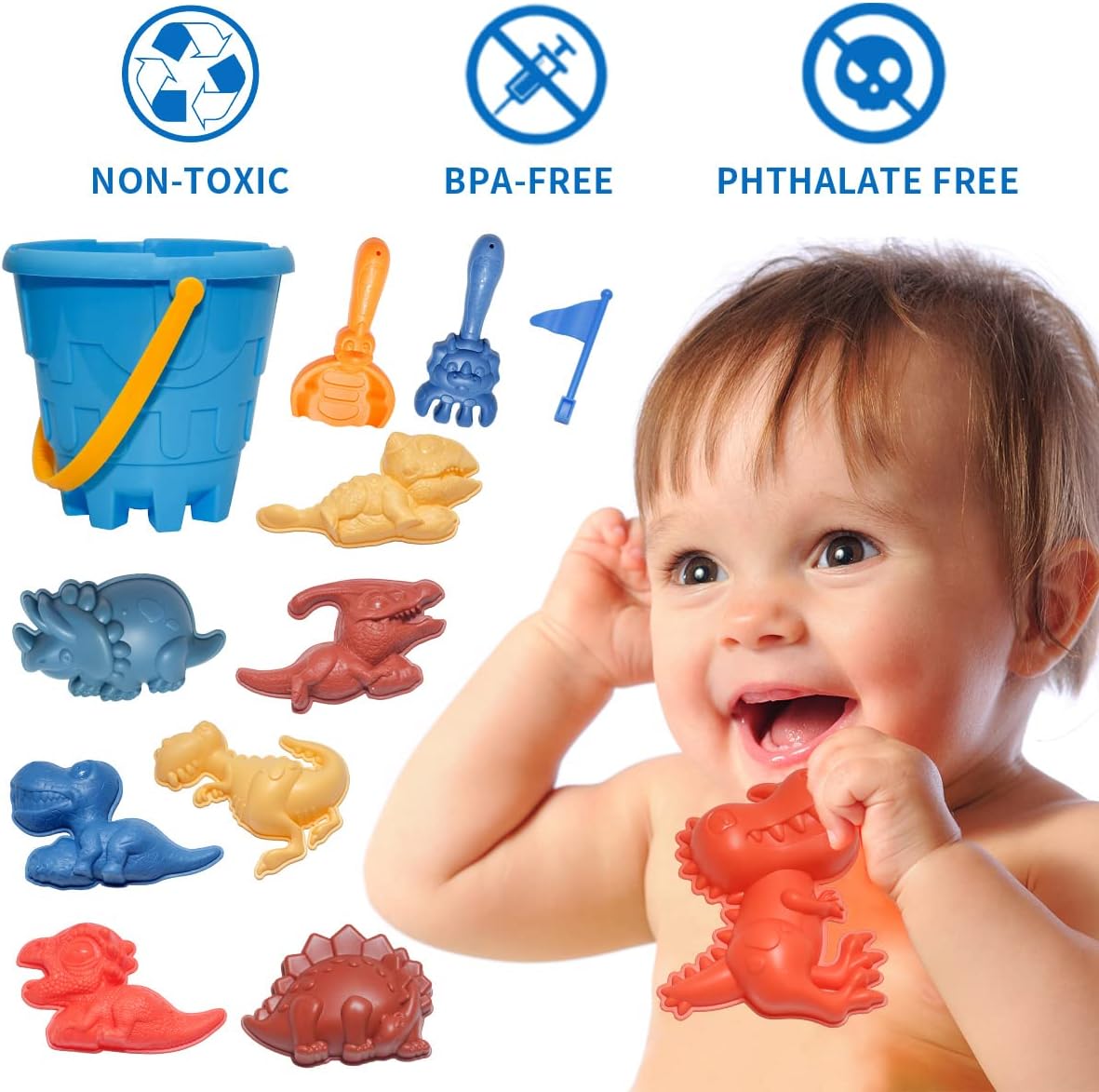 π¦ALL BEACH TOY SET:The seaside toy set contains bucket, flag,shovel, rake and all type of dinosaur sand molds.The molds are brilliant in coloration and numerous seaside mould.