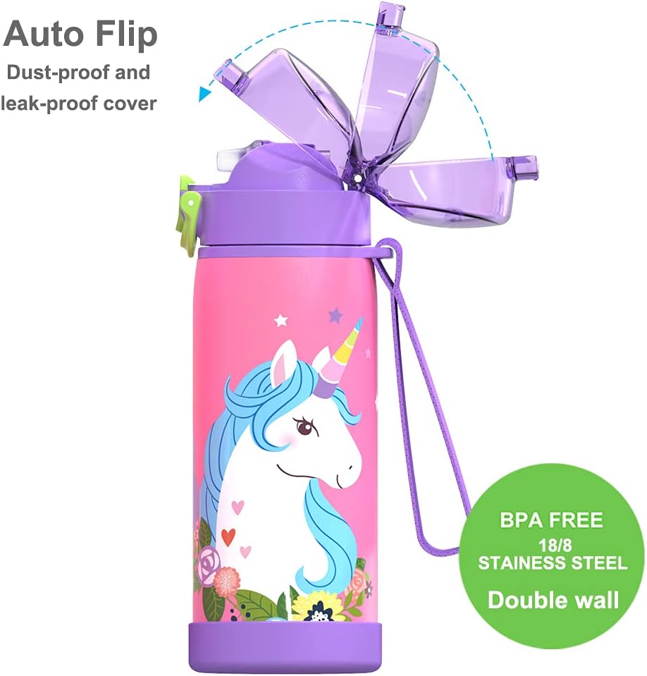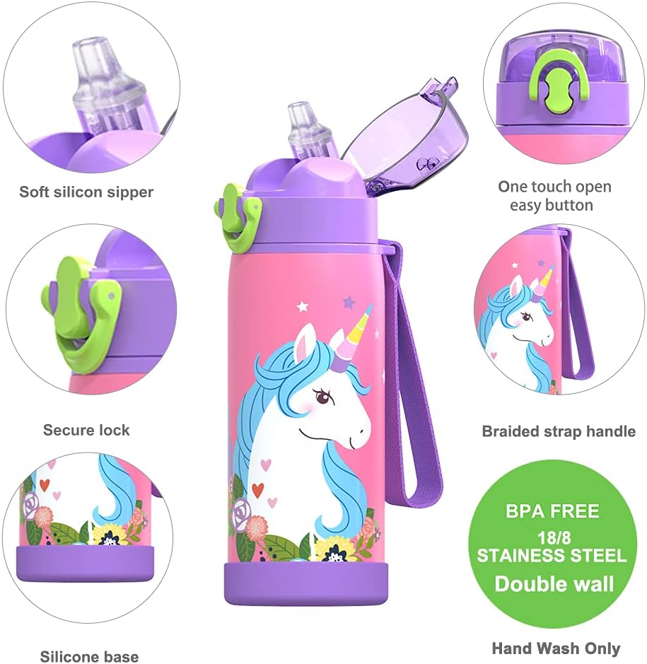 16oz unicorn insulated water bottle for youths in class / sports activities, double wall retains drinks chilly/sizzling longer time. 1 yr high quality guarantee, if there’s any high quality drawback, we’ll ship substitute.