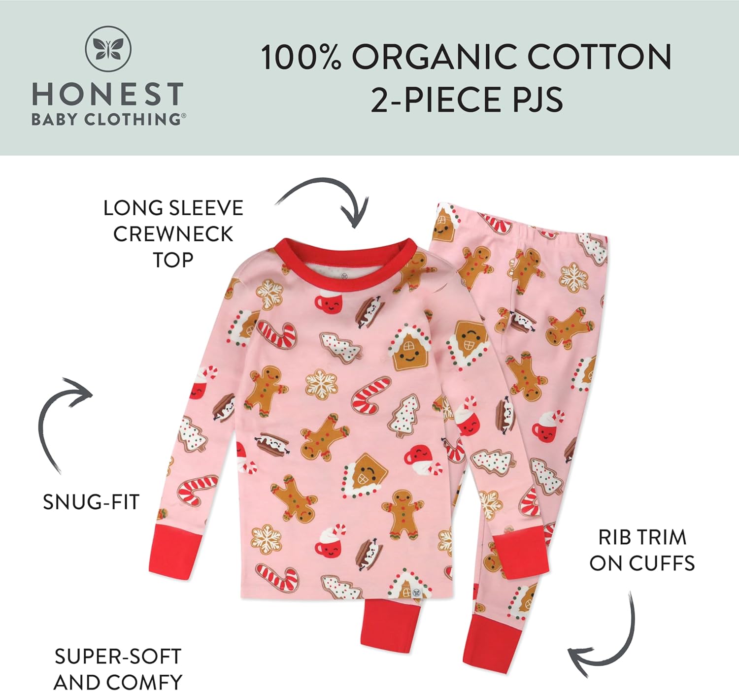 HonestBaby Holiday 2-Piece Pajamas Sleepwear PJs 100% Organic Cotton for Baby, Toddler, Kids
