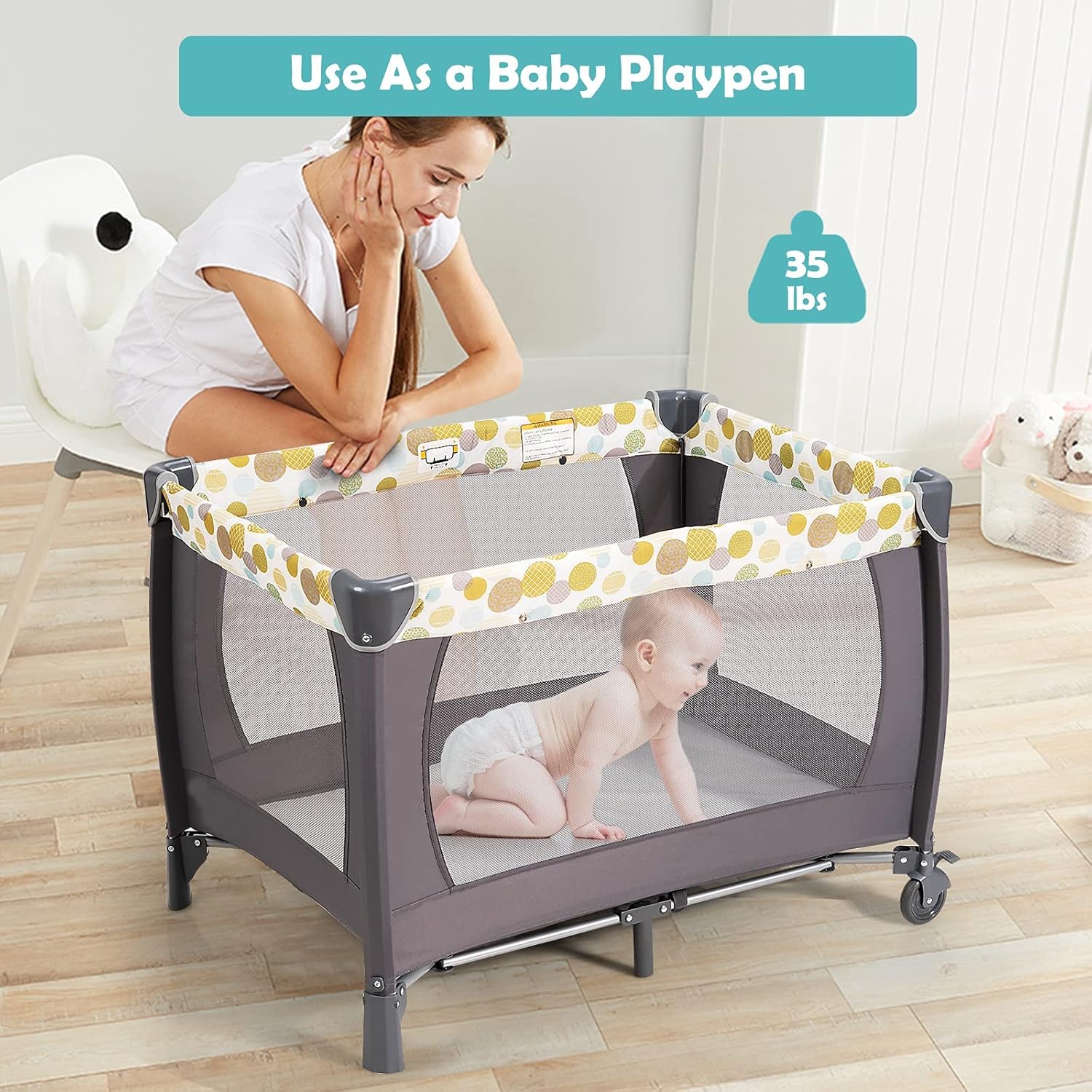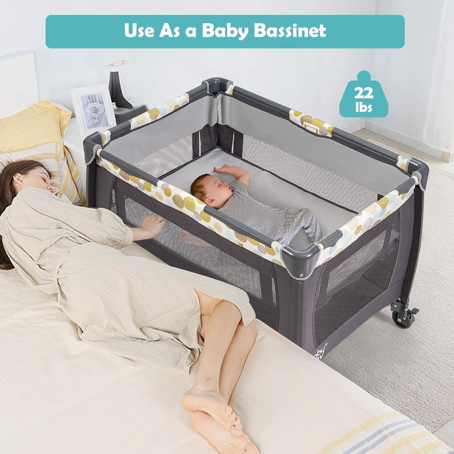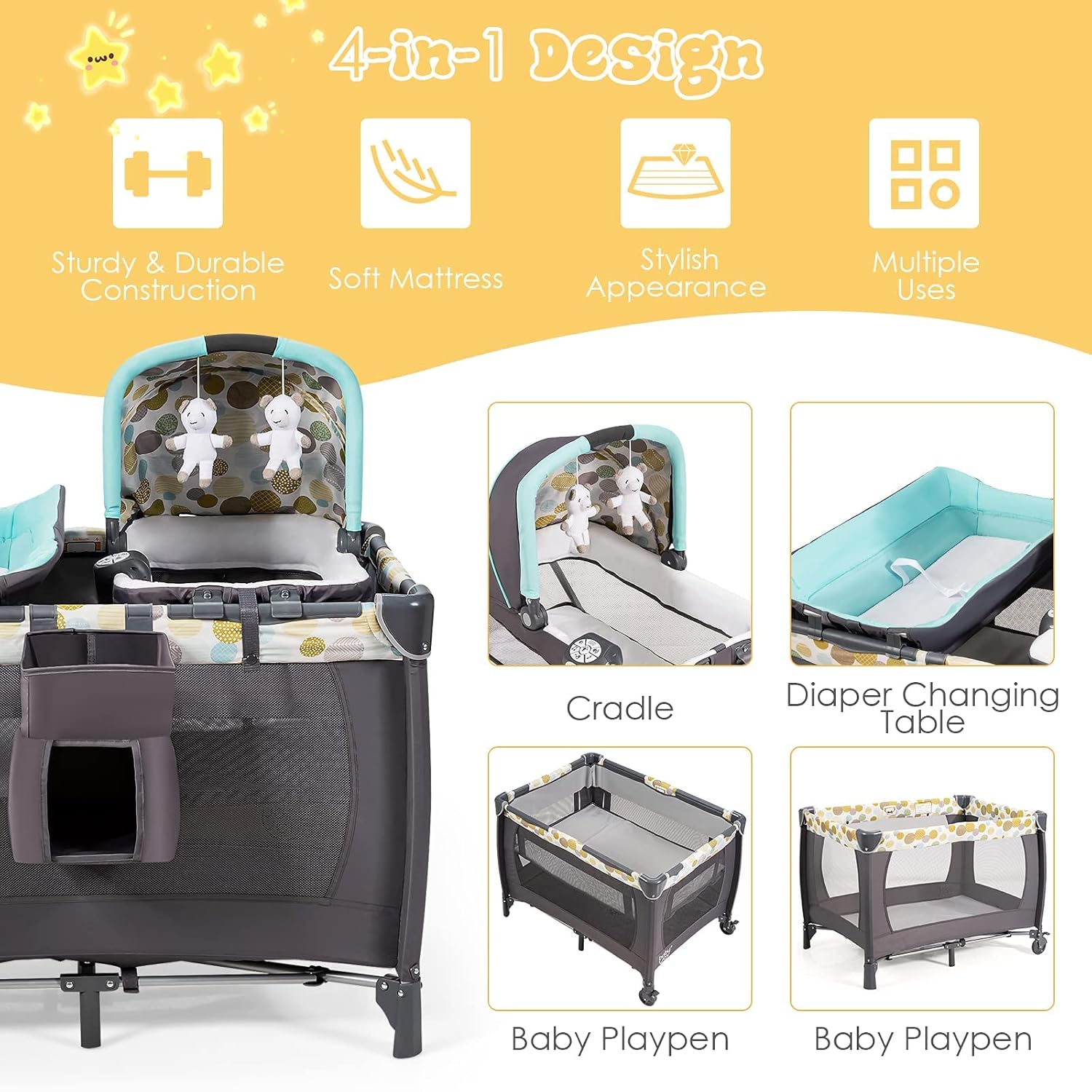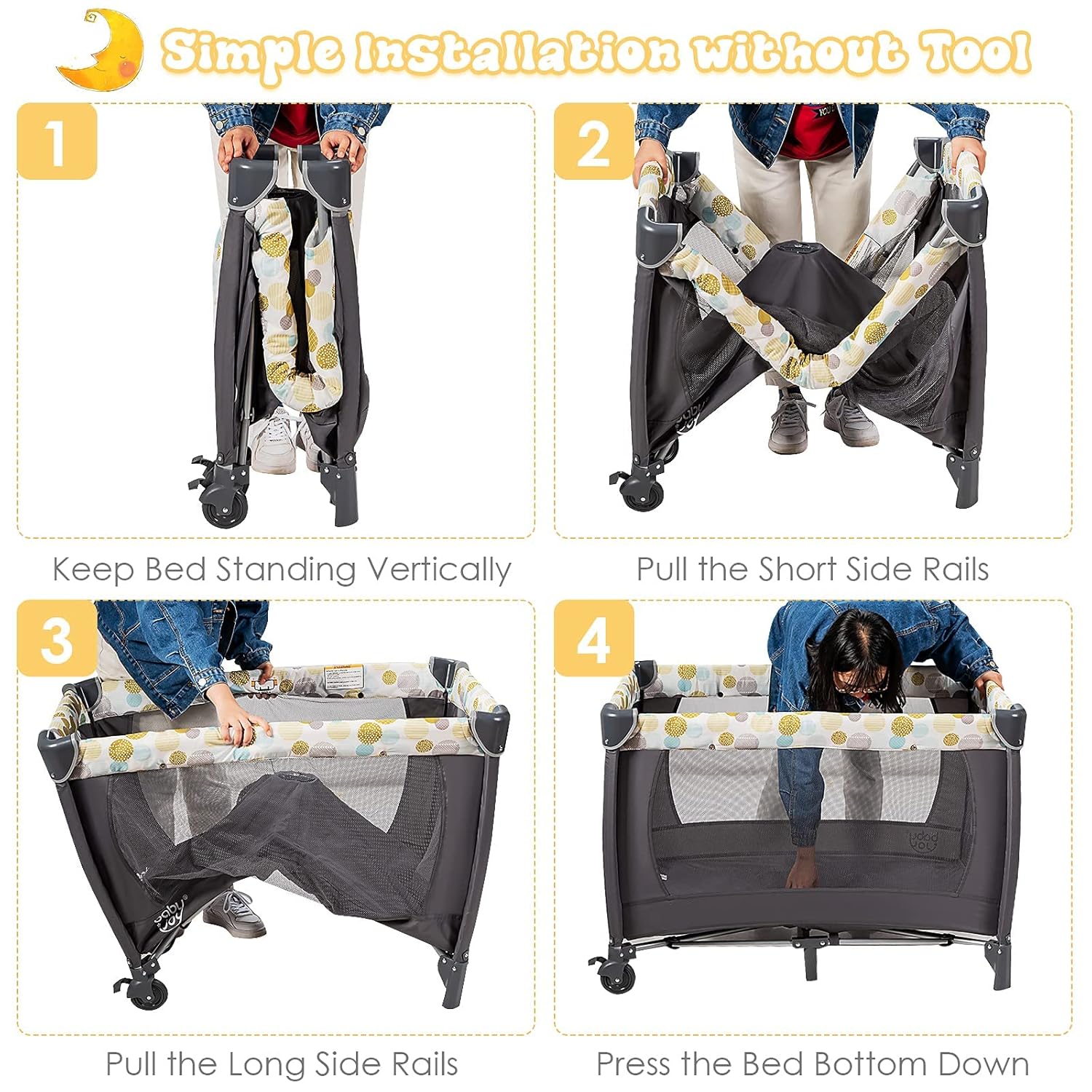 👶【4-In-1 Pack and Play】: Comes with a altering desk, a detachable toddler sleeping bassinet, a removable cradle and child play yard, this 4-in-1 pack and play will develop together with your infants and it’s very appropriate for enjoying and the occasional nap.