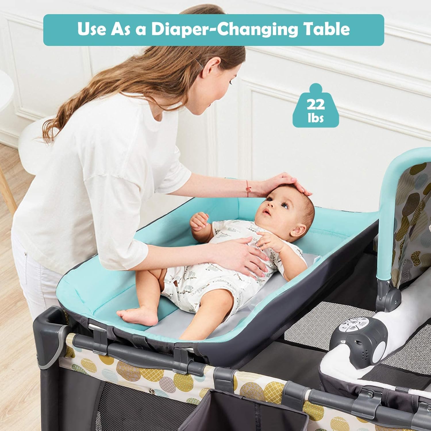 👶【Diaper Changer & Aspect Storage Bag】: Comes with a diaper changer and useful facet storage, this nursery middle helps you handle the newborns or infants problem free. It present a comfortable spot for the new child or toddler to get cleaned and the diaper organizer can maintain the diapers and different requirements useful.