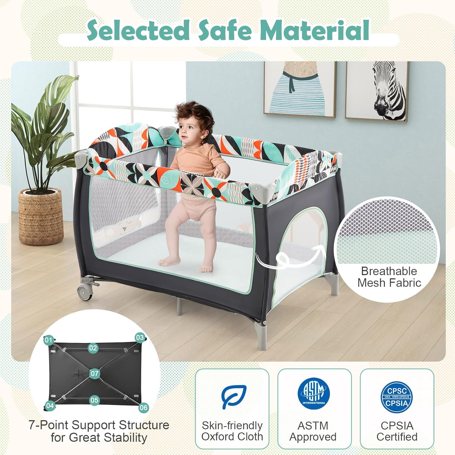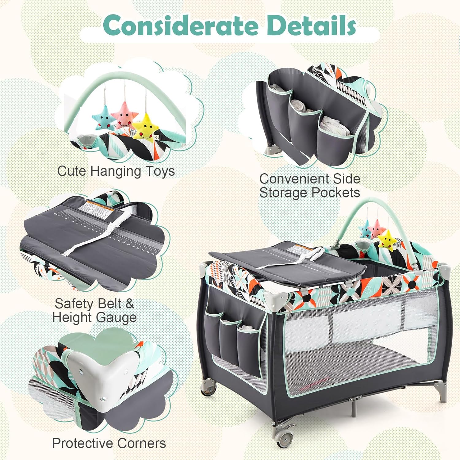 This 4-in-1 child playard is a flexible and multi-functional piece of child tools that gives a spread of options and features to accommodate totally different levels of your child’s progress. With its child-friendly considerate particulars, it supplies a secure and comfy house in your infant to play, sleep, and discover. The playard might be simply transformed right into a child crib, diaper changer, child playpen and a child exercise middle, making certain long-term usability and worth. It’s constructed with sturdy and steady building, assembly security requirements in your child’s safety. Organising the playard is fast and simple, and its moveable folding design permits for handy storage and transportation. Whether or not at house or on the go, this 4-in-1 child playard provides a sensible and handy answer for all of your child’s wants.
