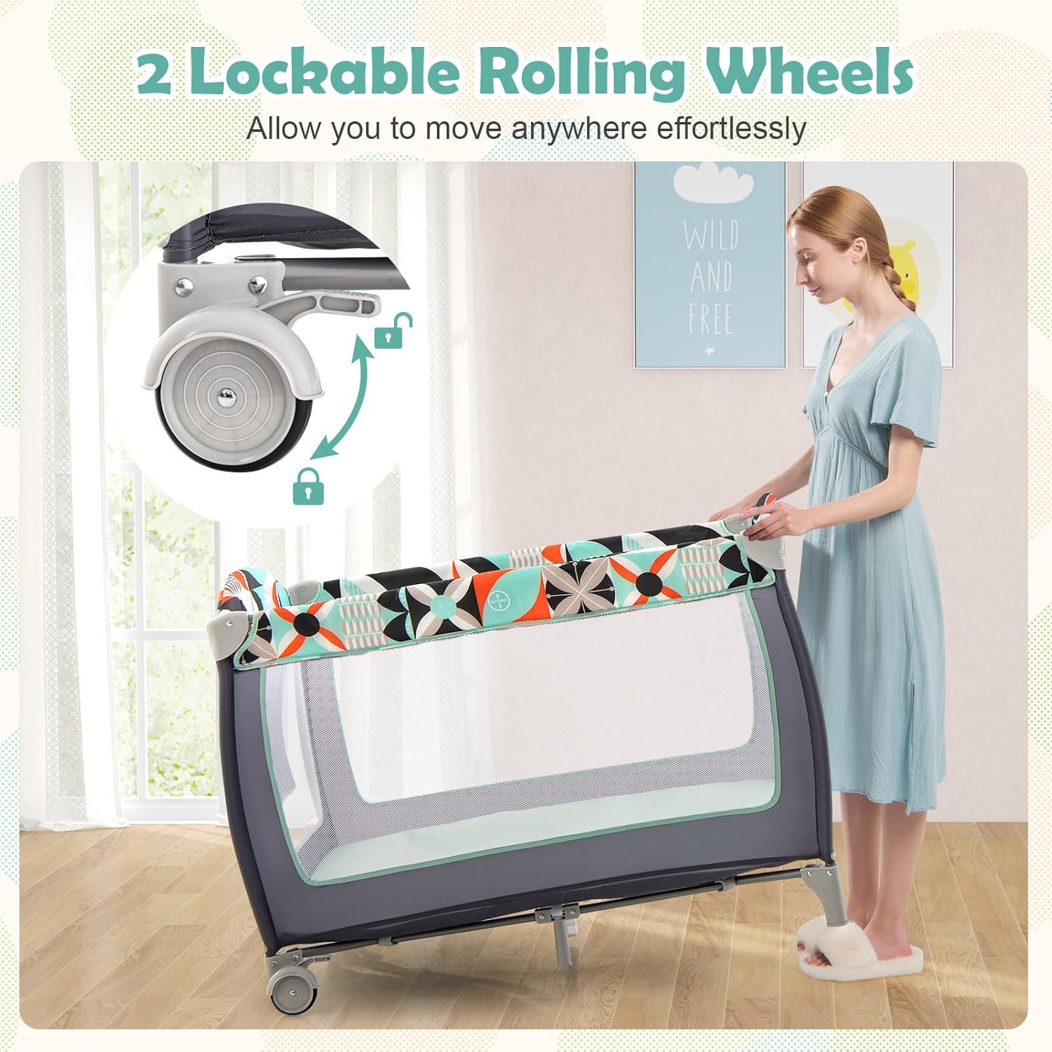 【Fast Setup & Simple Mobility】: To arrange the child playard, you simply want 4 straightforward steps! ①take out the mattress; ②open the lengthy mattress rails; ③open the quick mattress rails; ④press the underside middle down. As well as, it’s designed with 2 lockable rolling wheels that make it easy to maneuver from room to room.