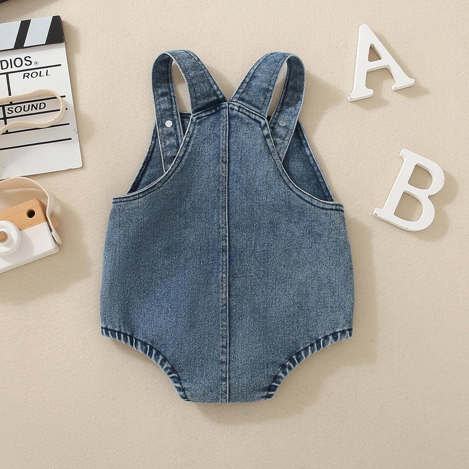 Honganda Baby Girl Boy Denim Romper Sleeveless Straps Button Jeans Jumpsuit Newborn Infant Summer Clothes Overalls