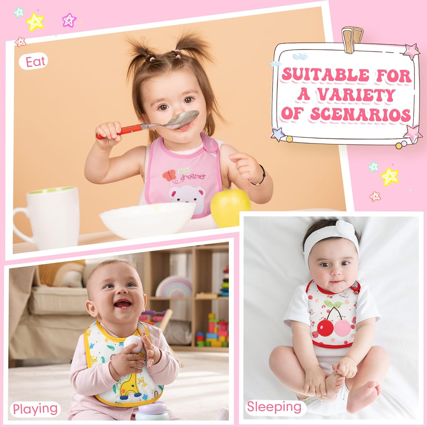 These drool bibs measure about 7.48 x 12.2 inches/ 19 x 31 cm, which offer ample protection to forestall the infant’s garments from spills and messes. They’re designed to catch meals and liquids, holding the infant’s outfit clear. Plus, these child bibs are simple to wash, just for hand wash. They are often shortly dried and prepared to be used once more, making them handy for busy mother and father.