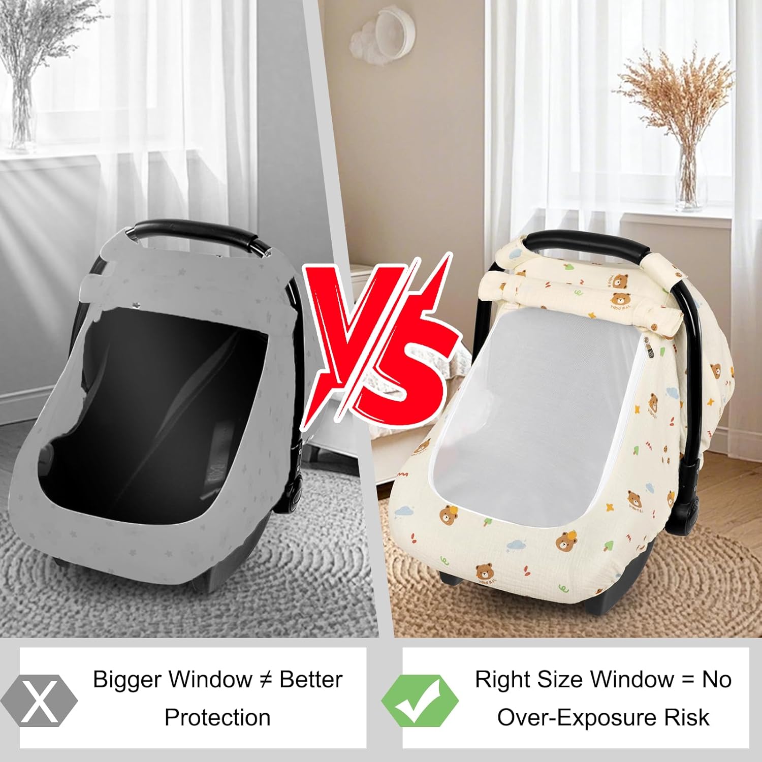 Premium Muslin Material & Enhanced Breathability: Crafted from 100% comfortable, light-weight muslin cotton, our automotive seat cowl ensures superior airflow to maintain your child cool and cozy, excellent for summer time necessities for child