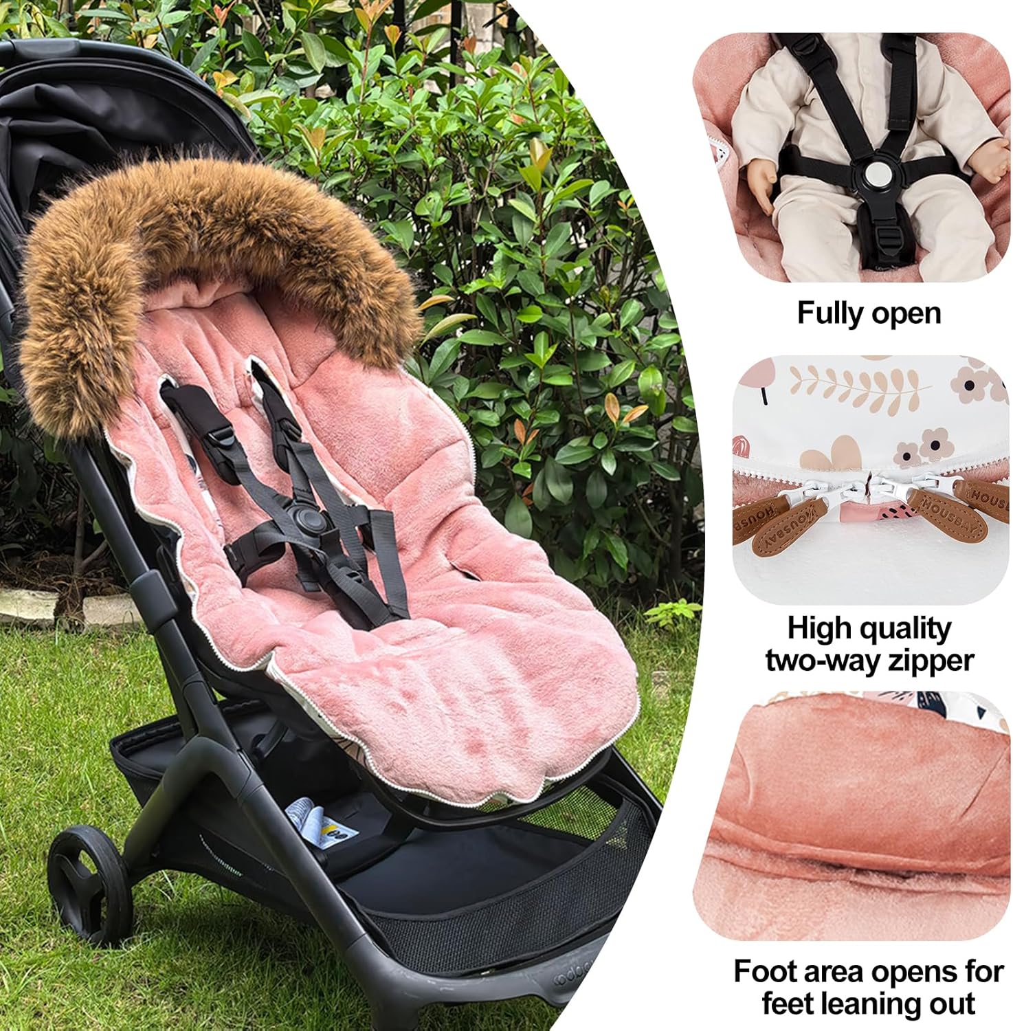UNIVERSAL FIT & SAFETY GUARANTE: The HOUSBAY Footmuff can match most pushchairs, buggies, prams, strollers, and automobile seats, and the strap slots with 3 or 5-point belts hold infants extraordinarily secure.