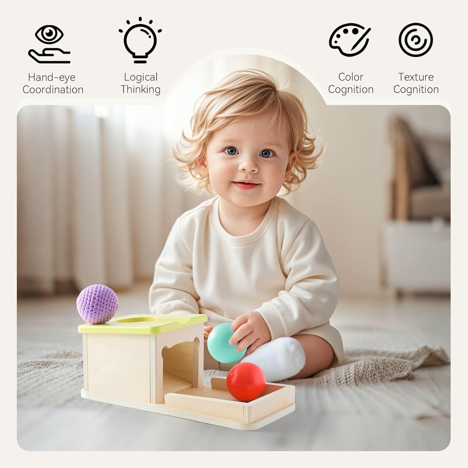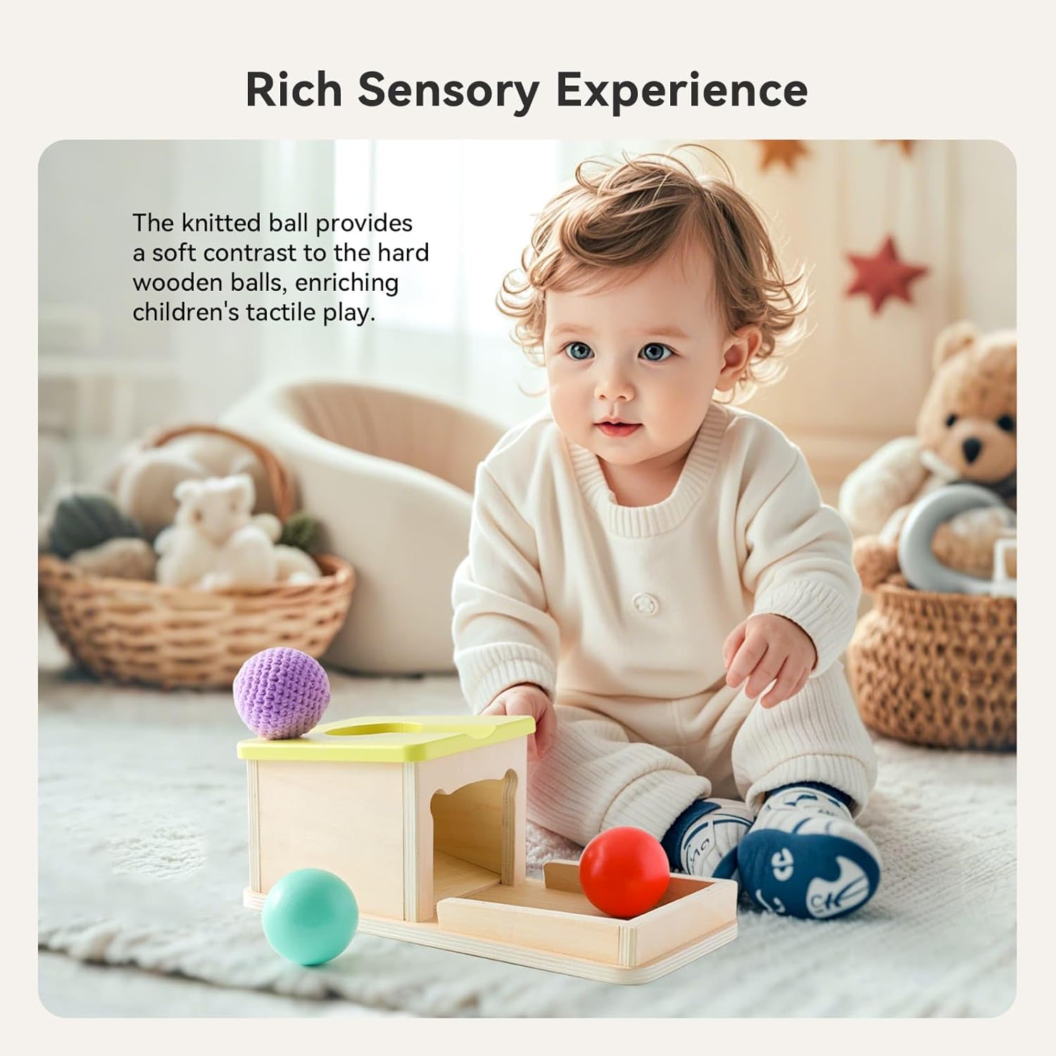 𝐌𝐮𝐥𝐭𝐢-𝐓𝐞𝐱𝐭𝐮𝐫𝐞 𝐒𝐞𝐧𝐬𝐨𝐫𝐲 𝐏𝐥𝐚𝐲: Distinctive 2 wooden + 1 knit ball set creates tactile distinction – easy polished wooden with comfortable knit texture to encourage sensory exploration.