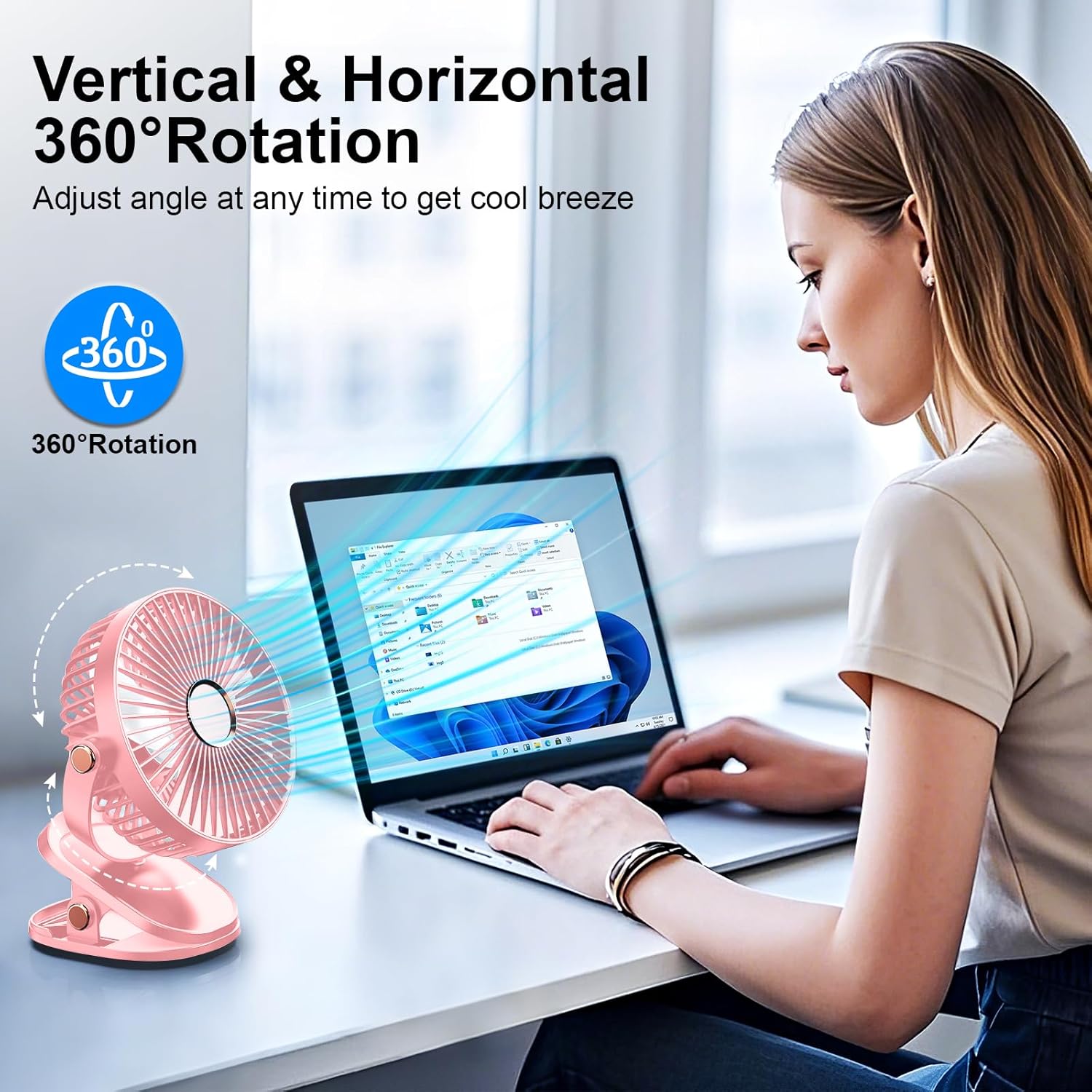 Mini Measurement with Rotation Design: 360° of horizontal rotation and 360° of vertical rotation, The mini fan is simply 6*8*4.4inch and 0.78lb, Not solely simple to hold but additionally saves area.