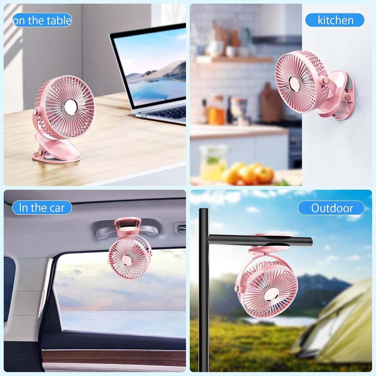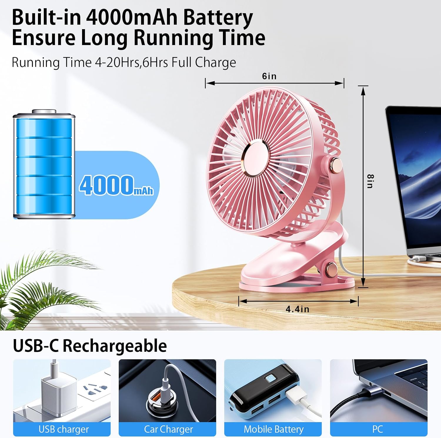3 in 1 Rechargeable Battery Fan: This rechargeable clip on fan contains a built-in 4000mAh rechargeable battery that may final from 4 to twenty hours of cordless operation on a single cost,making it moveable and handy for numerous settings: Might be clipped, positioned on a desk, mounted on a wall, appropriate for desks,strollers, tenting, automobile seats,workplace or house and so on.your house/workplace/seaside/tenting/journey necessities.
