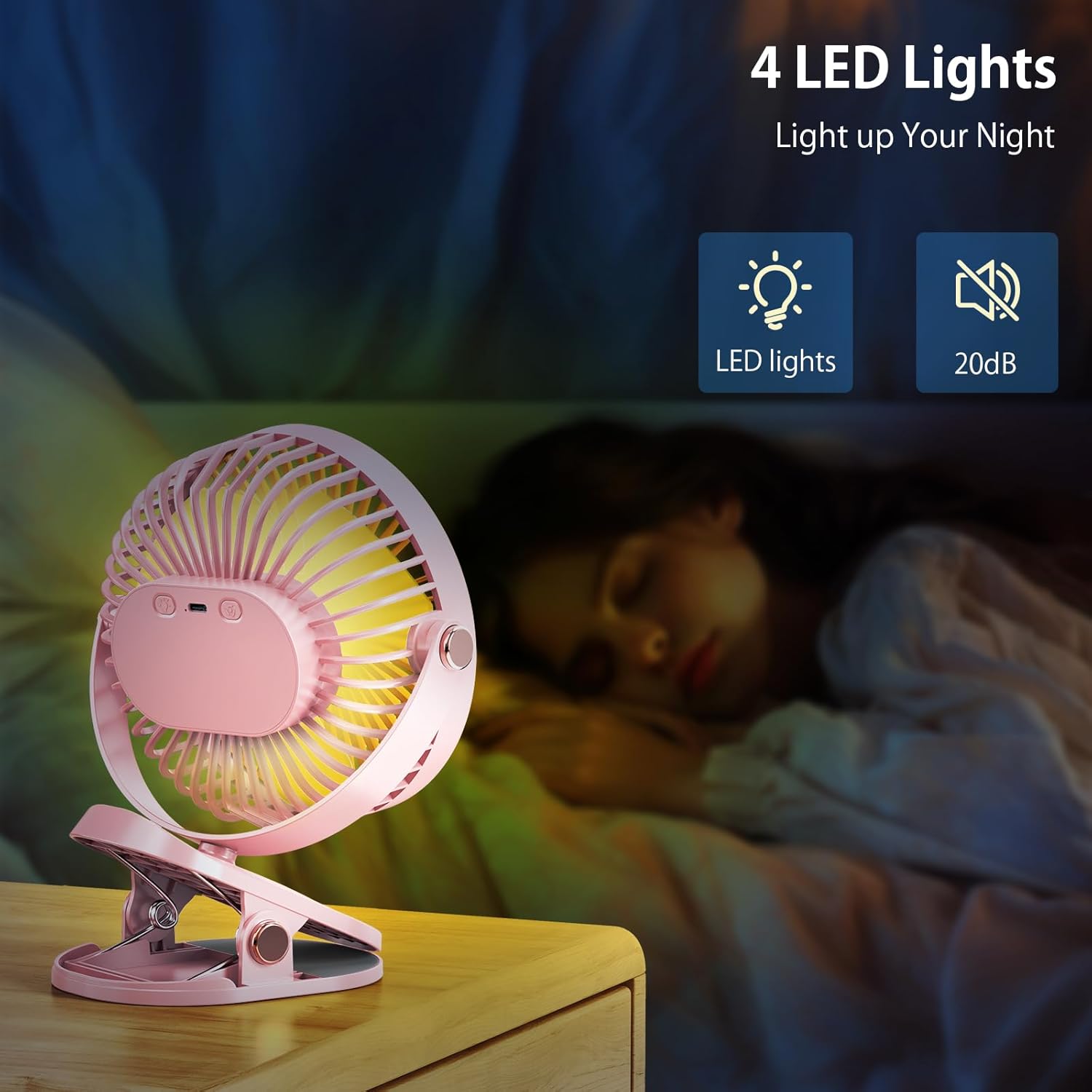 LED Lights and 4 speeds:This mini clip fan built-in 4 LED lights, lighting up evening in tent or outside actions, secure and cozy in sizzling evening.The moveable rechargeable fan with 4 adjustable velocity settings and nature wind, It is a perfect perform for bedtime or nap ,you’ll be able to customise the airflow to your choice with none disturbance.