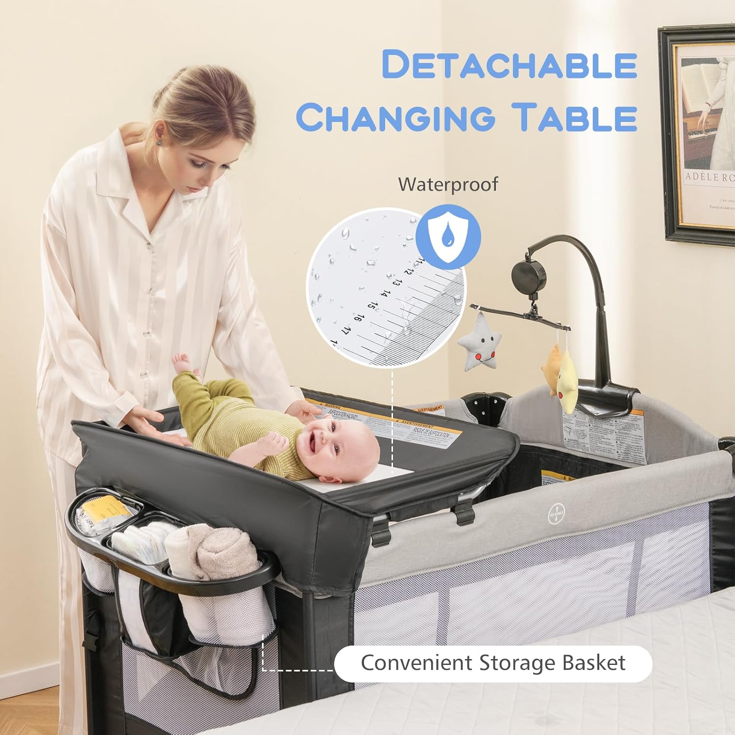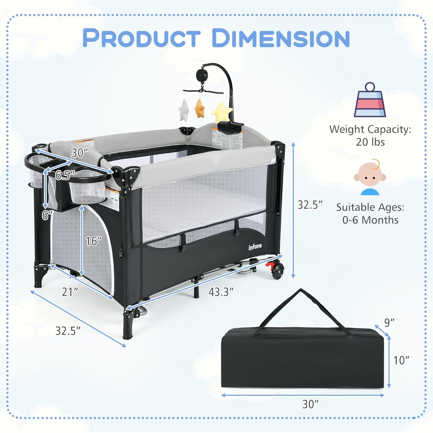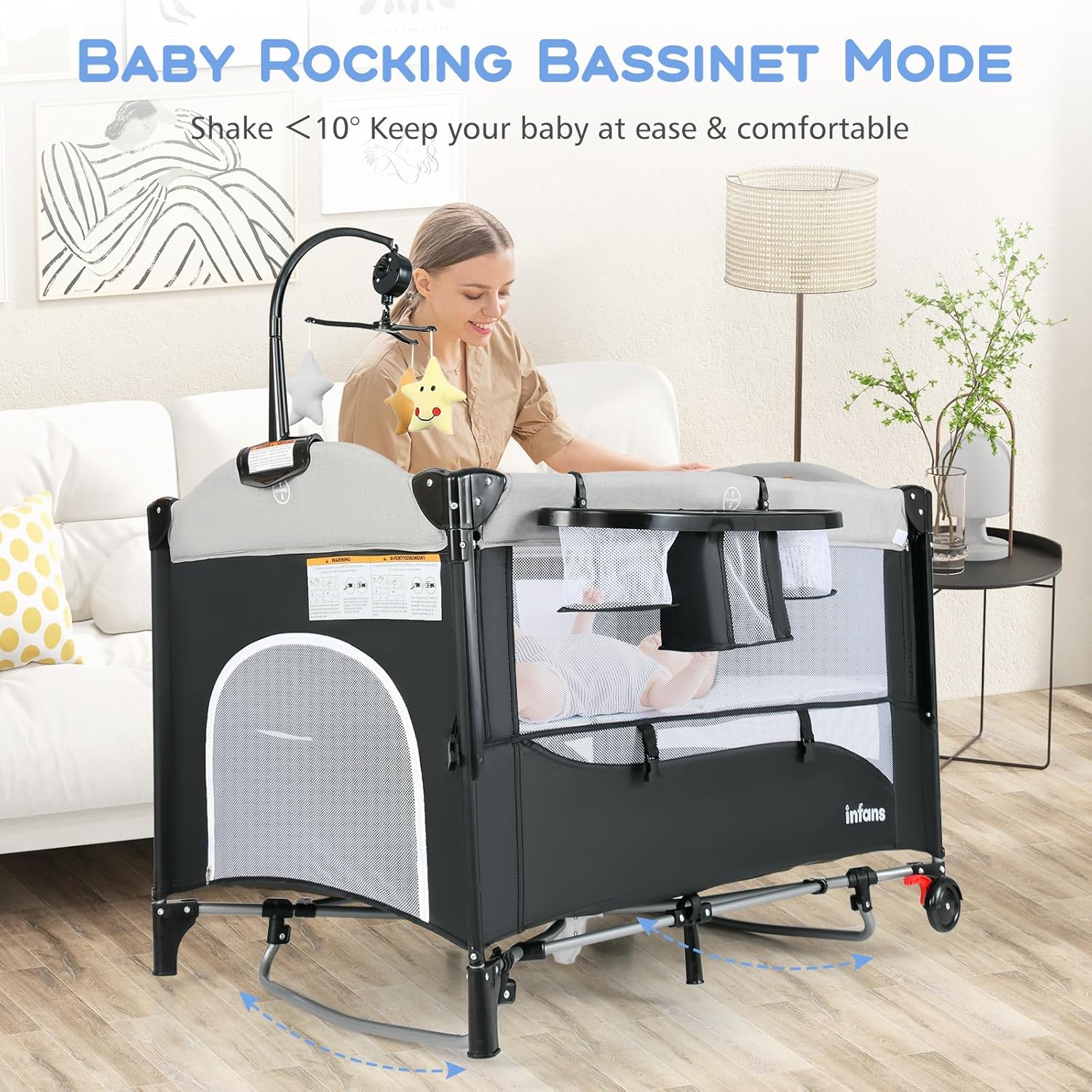 5-IN-1 PACK AND PLAY: INFANS 5 in 1 pack and play will be transformed into quite a lot of modes to fulfill the totally different wants of the infant within the rising course of: child bedside sleeper, diaper altering desk, child rock cradle, exercise middle, and child crib