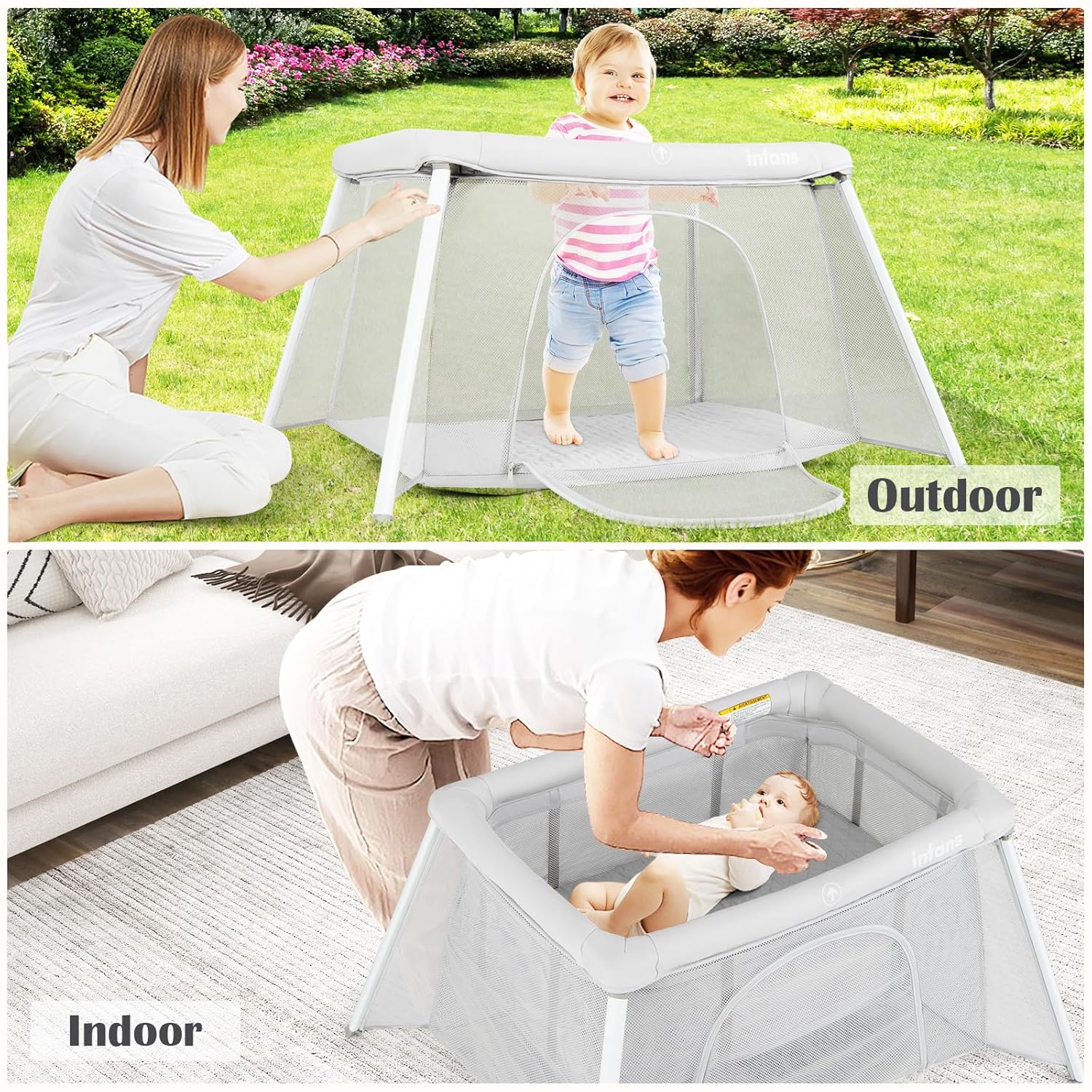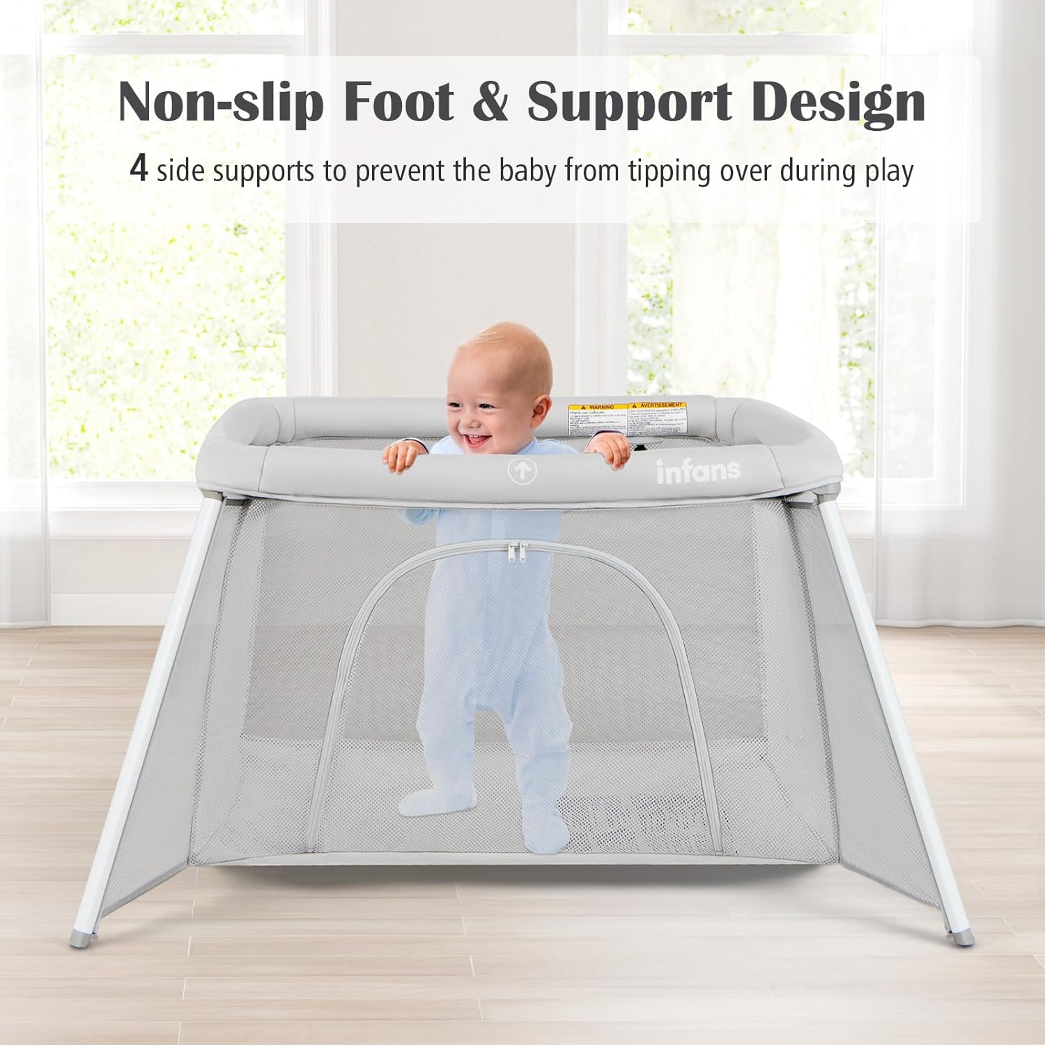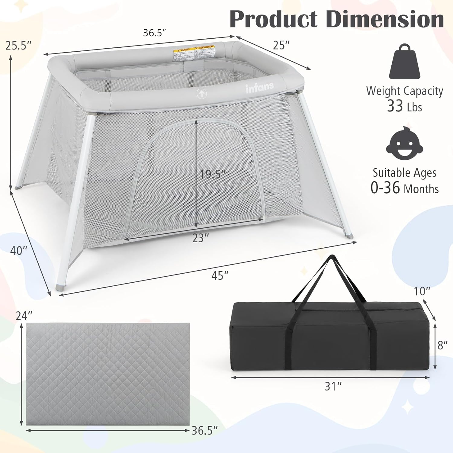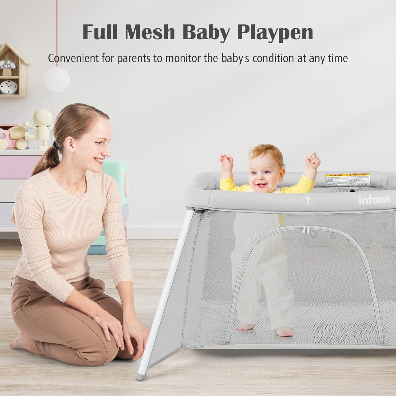 Comfy Sleeping House: The INFANS child mattress comes with a tender mattress to make sure the infant sleeps extra comfortably. The totally breathable mesh design permits dad and mom to look at the infant extra conveniently. The mattress cowl will be simply eliminated for cleansing. (Mattress dimension: 36.5″ lengthy x 24″ broad).