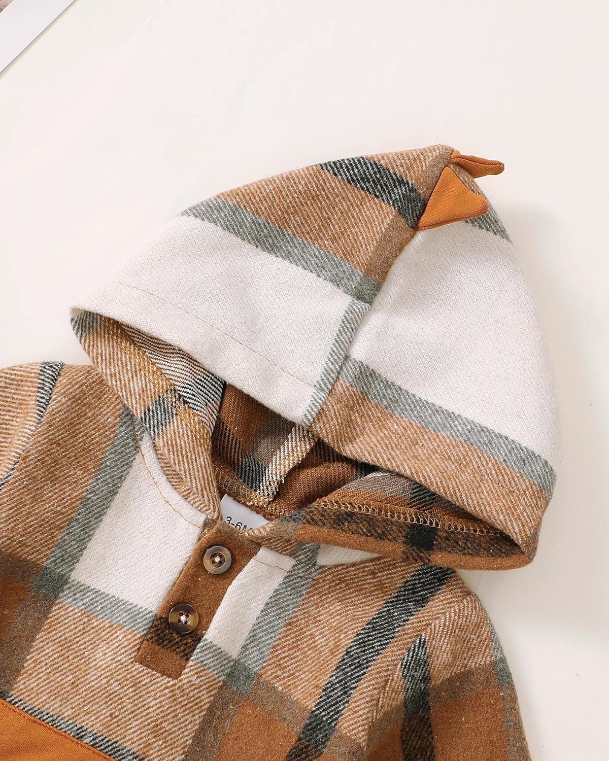 Toddler Boys Garments Flannel Plaid Lengthy Sleeve Hoodied Tops + Pants