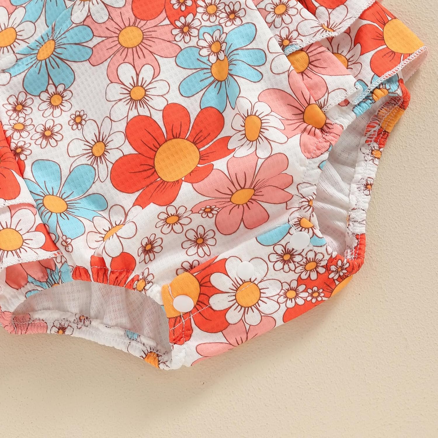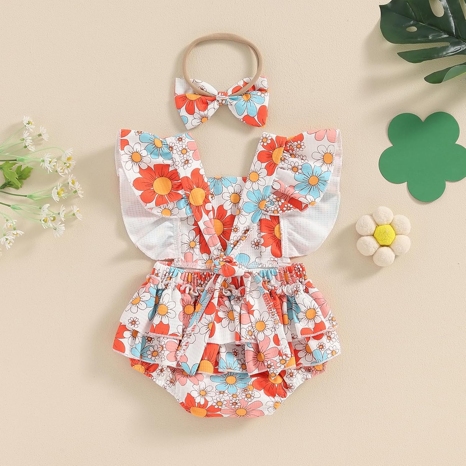 ​Infant Baby Girl Summer Clothes Outfits Cute Print Fly Sleeve Romper Jumpsuit Bodysuit with Headband