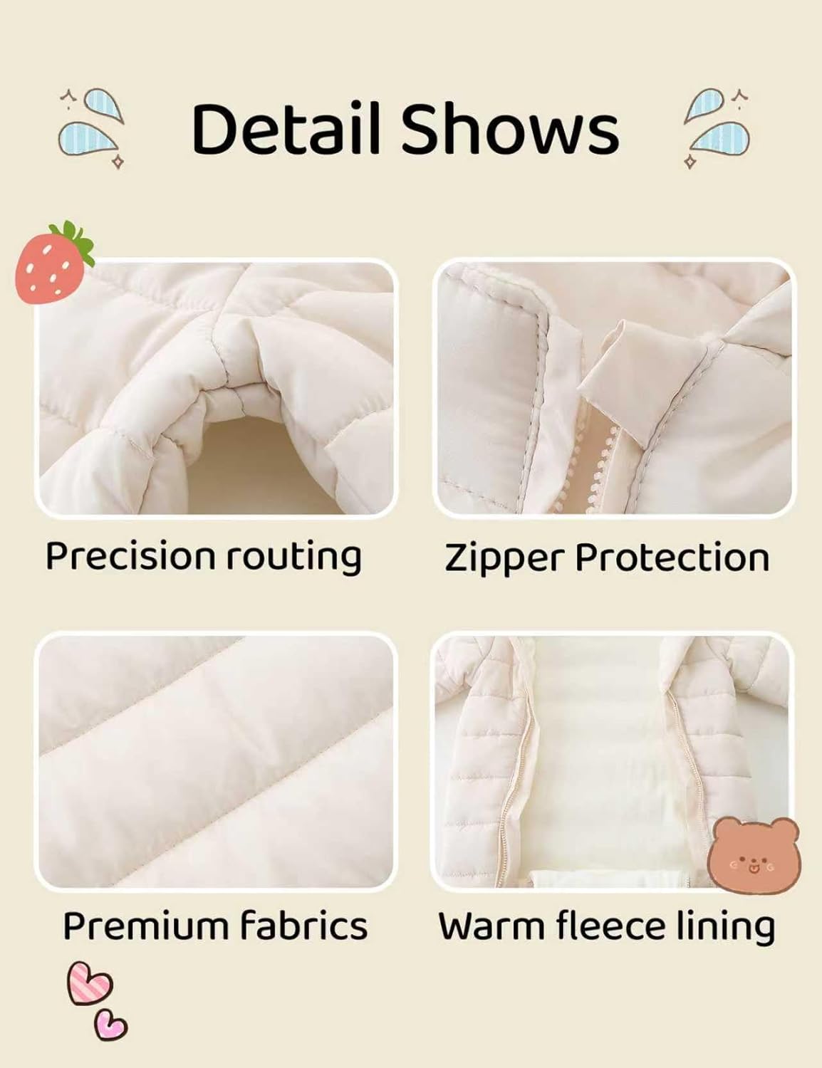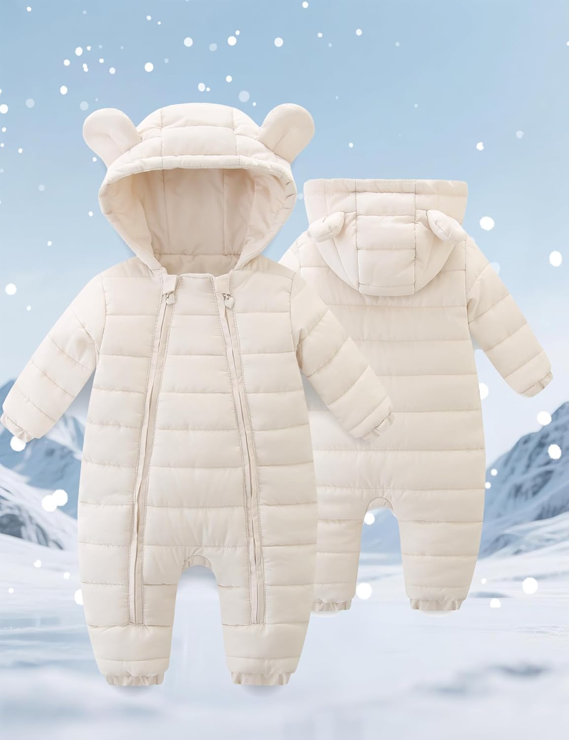 Infant Baby Snowsuit Cute Bear Ears Jumpsuit Newborn Romper Double Zipper Warm Jacket for Winter