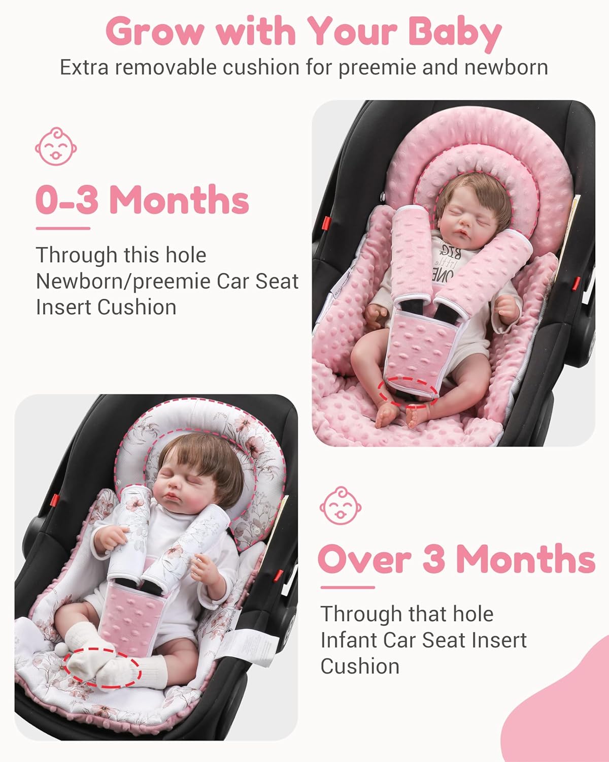 Full head help for infants 0-12 months: Detachable crescent head cushion + thick padding adapts from preemie to toddlers. Full head help prevents head shaking (0-3M); take away cushion for older infants (3-12M). Fluffy physique help padding makes child extra snug in toddler automotive seats, child strollers, or swings and rockers, child bouncers, bassinets. No extra shopping for a number of inserts