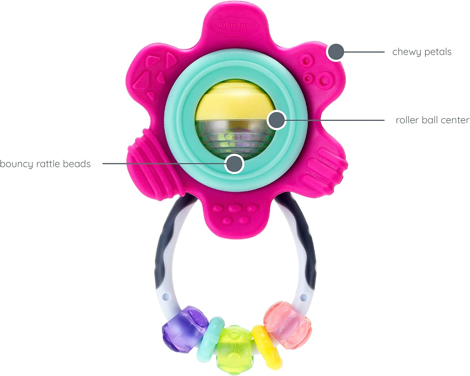 This cheerful rattle has a number of busy actions for little ones to find. The multi-texture petals are excellent for teething and sensory studying. The curler ball heart has bouncy rainbow beads. And, the easy-to-grasp deal with contains spinning, chaser beads.