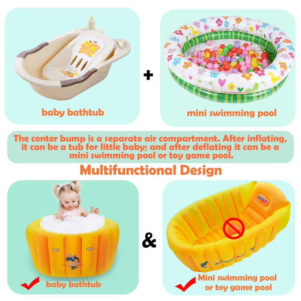 SOFT & SAFE MATERIALS: Non-toxic thickened PVC, sensible, sturdy, Blow up tub is tender, easy with out burrs, it’s not straightforward to break youngsters’s delicate pores and skin. Delicate child bathtub mat backside, child sink tub to carry sufficient water.