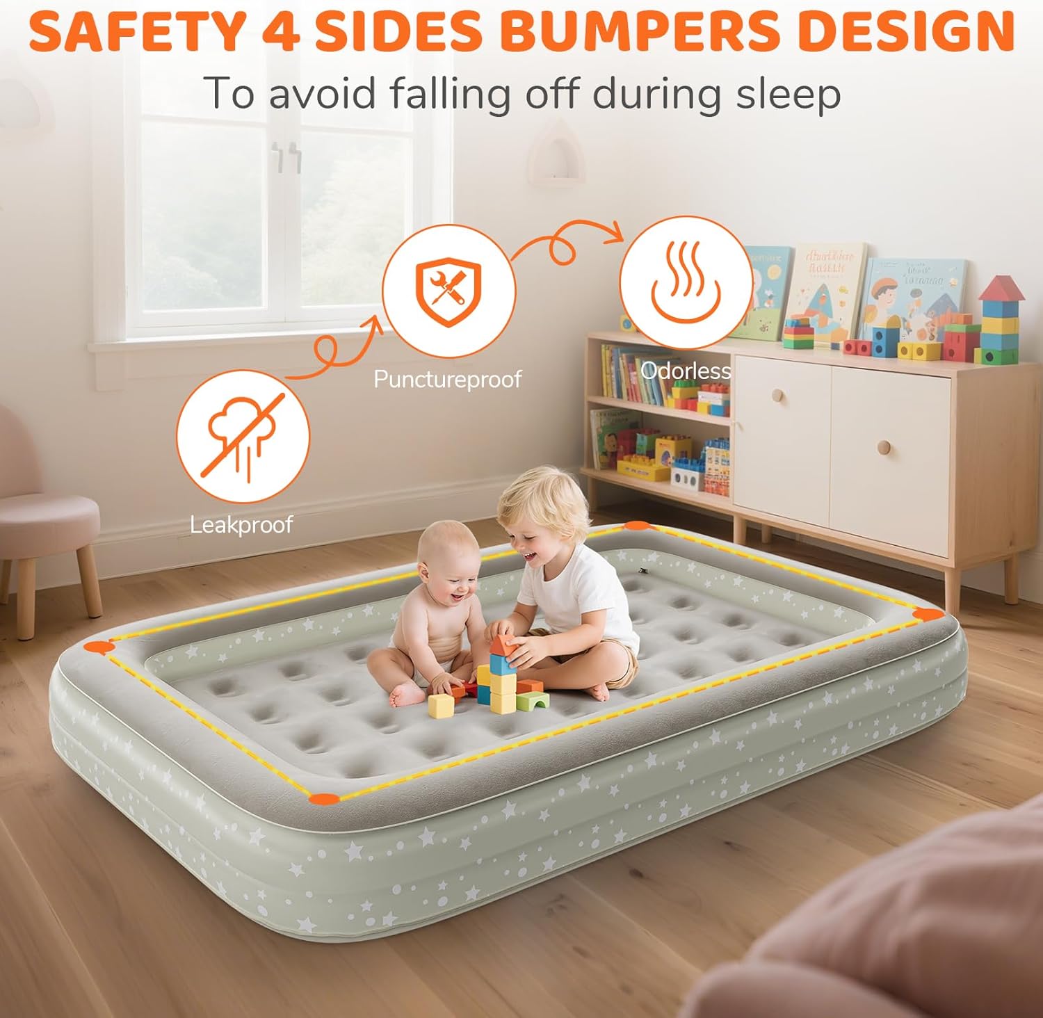 【Sturdy & Distinctive Star Sample】Crafted from PVC materials and that includes bolstered welded seams, this toddler air mattress is exceptionally sturdy, successfully stopping air leaks. It provides a really perfect floor for youngsters to sleep and play on, making certain each consolation and security.As well as, the distinctive star sample will make your youngster love the journey toddler mattress.