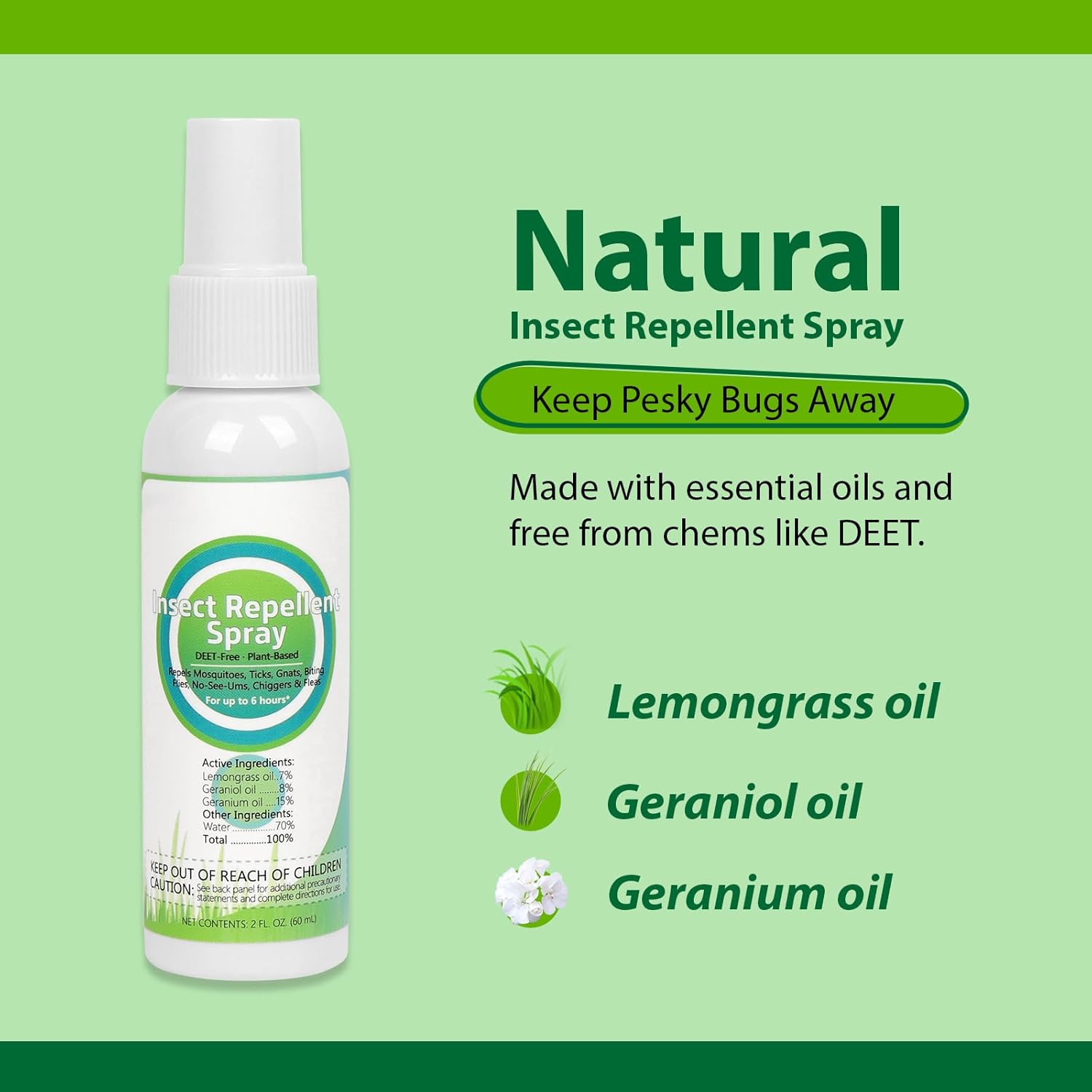 Mosquito Repellent Spray with Botanical Components: Formulated with pure lemongrass oil, geraniol oil, and geranium oil; this plant-based spray successfully repels mosquitoes, fleas, lice, ticks, and different bugs