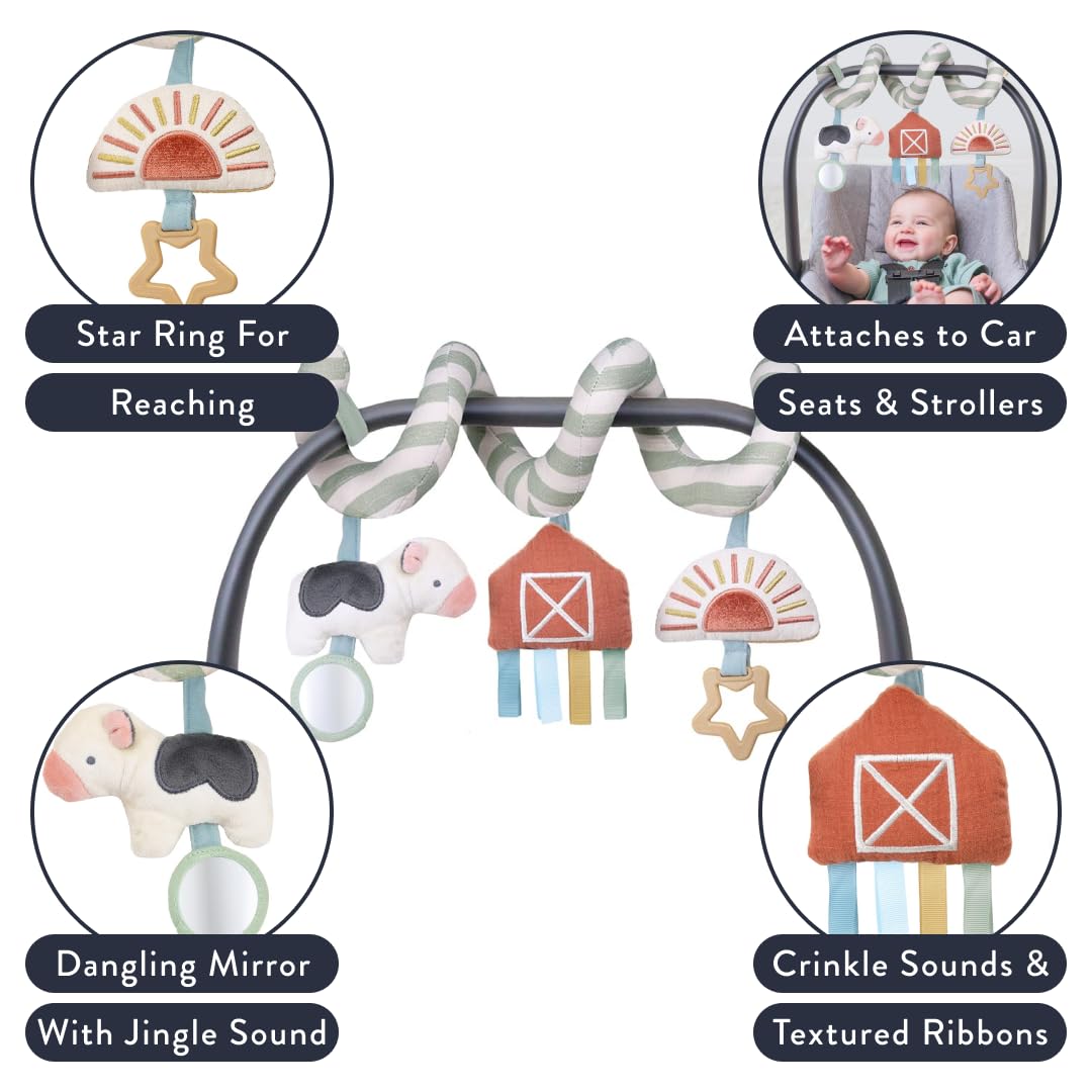 Itzy Ritzy Spiral Automotive Seat & Stroller Exercise Toy – Stroller & Automotive Seat Toys for Ages 0 Months and Up – Hanging Toys Embrace Dangling Ring, Mirror and Textured Ribbons (Farm)