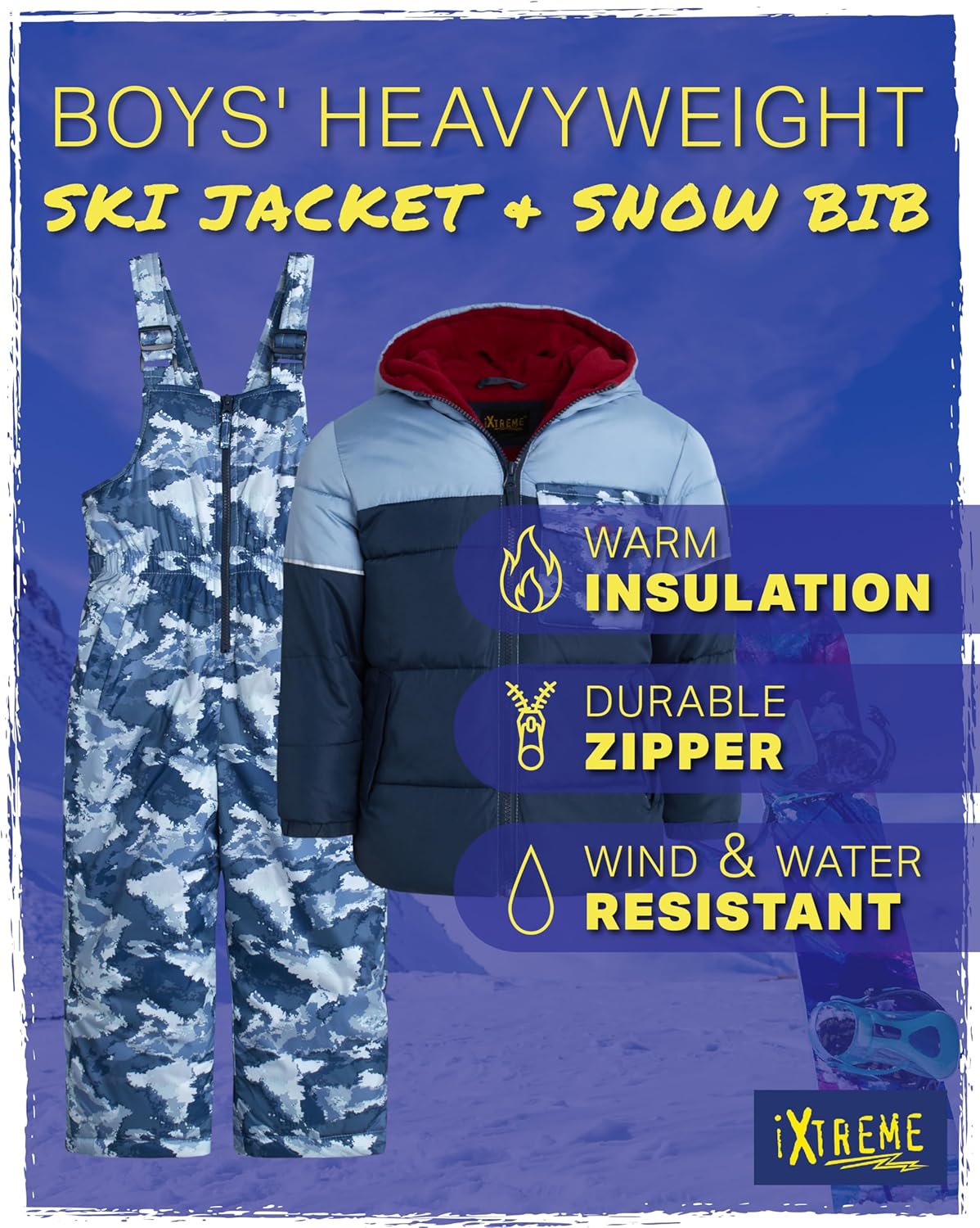 iXtreme Boys Snowsuit Set – 2 Piece Polar Fleece Lined Weather Resistant Insulated Ski Jacket & Snow Bibs Overalls for Boys, Size 5, Dark Navy Blue