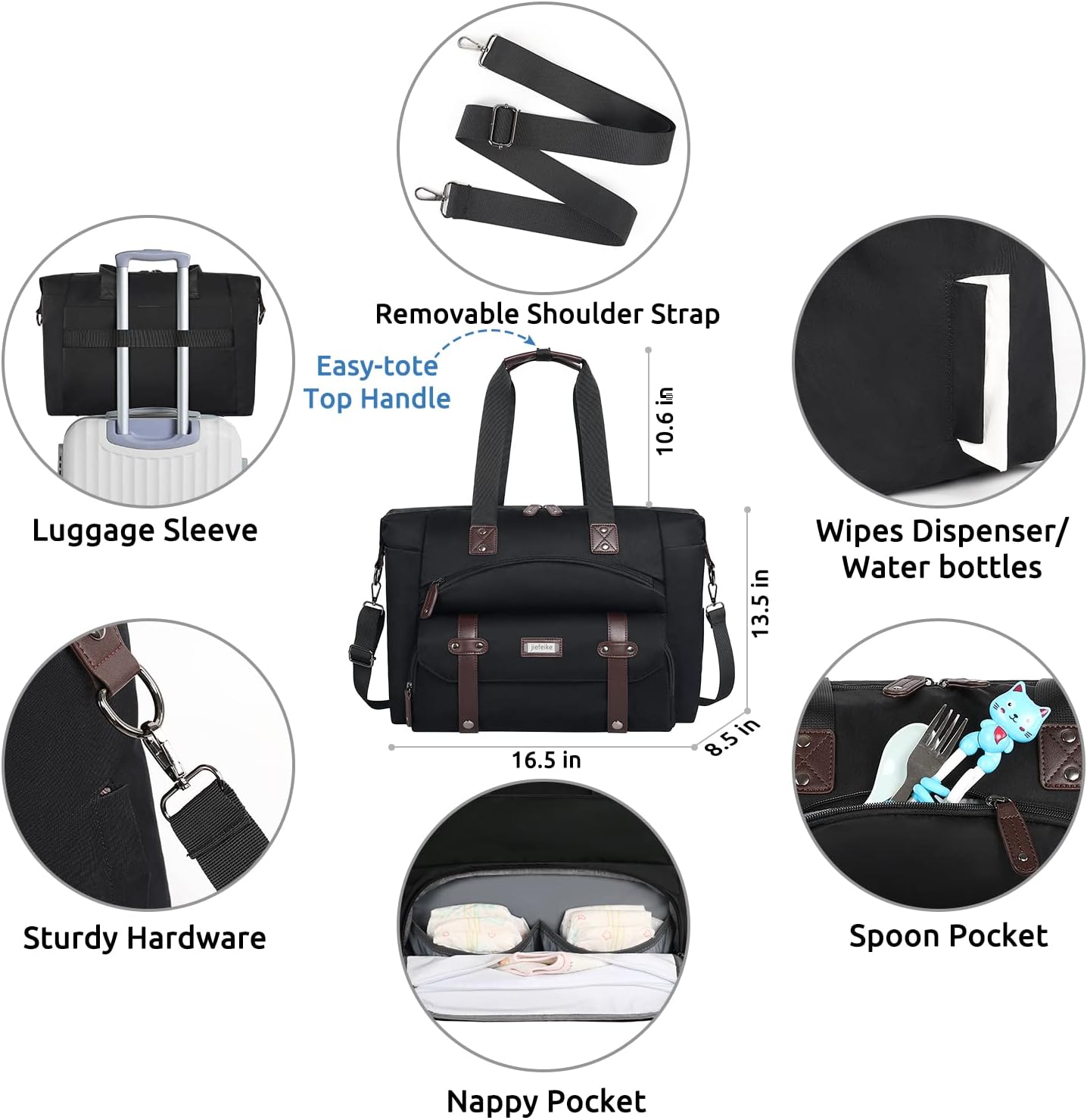 Diaper bag tote*1 Dimension:16.5*8.5*13.5inch(L*W*H)
