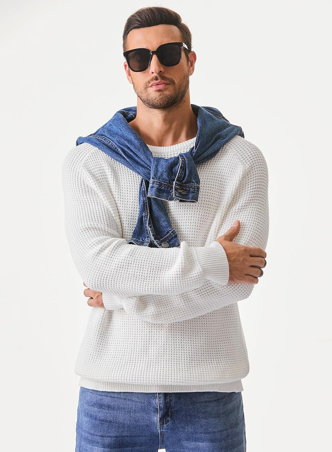 JMIERR mens pullver sweaters crafted from comfortable waffle textured knitted material