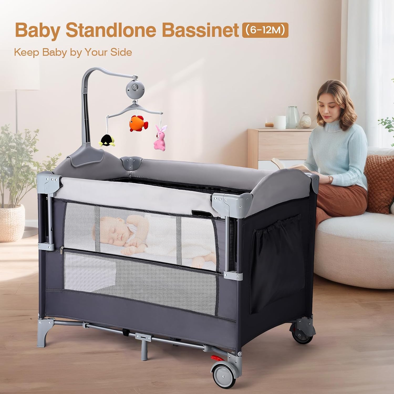 Versatile & Multi-Objective Design: This Pack and Play with Bassinet serves as a transportable crib, playard, and bedside bassinet, making it excellent for infants and toddlers. It features a detachable bassinet for newborns (as much as 15-20 lbs) and converts to a spacious playard as your child grows. Supreme for journey, small houses, or on a regular basis use