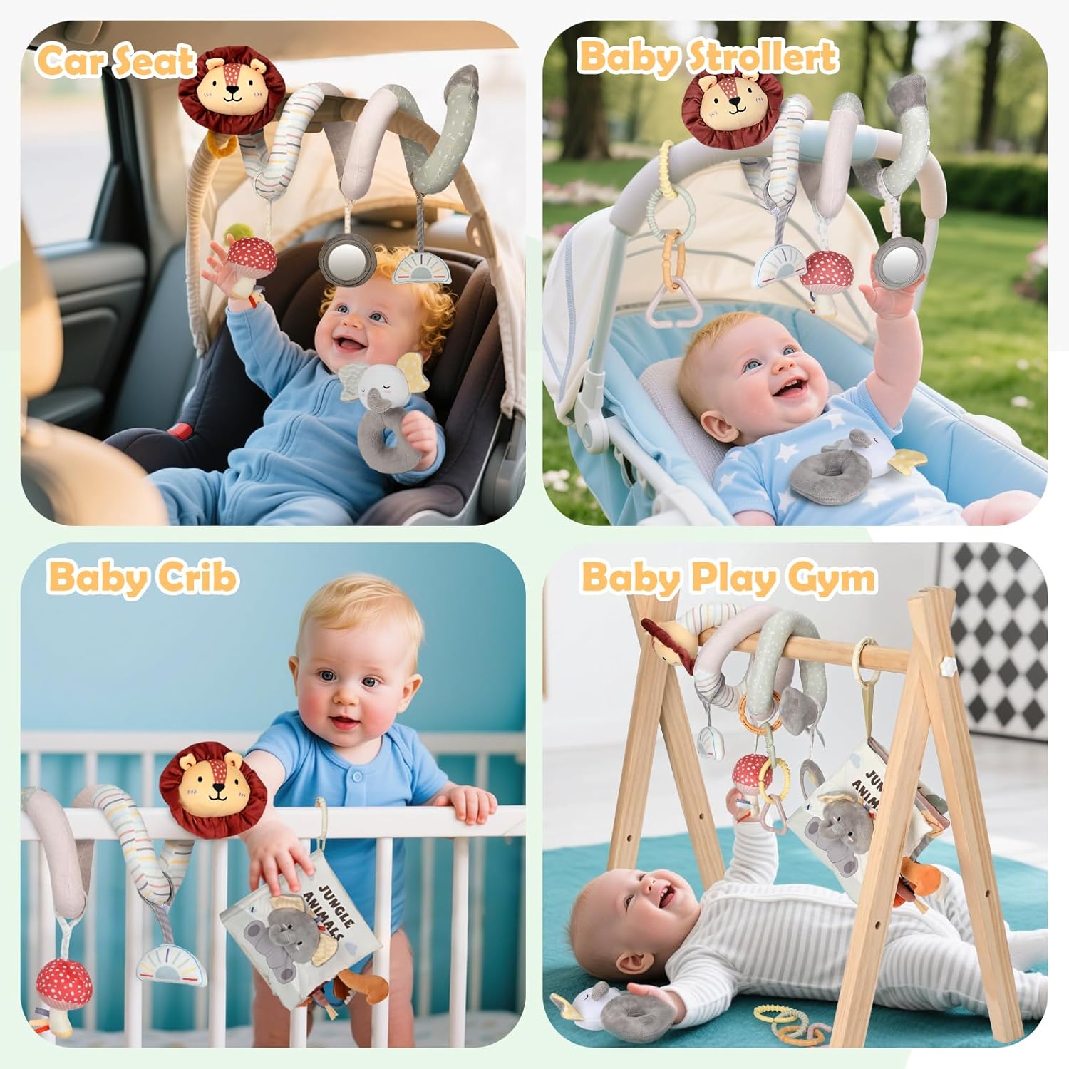 [Car Seat Toys] The spiral plush toy wraps simply round automobile seat handles, strollers, cribs, or play gyms, making it a flexible journey companion for infants from new child to 12 months.