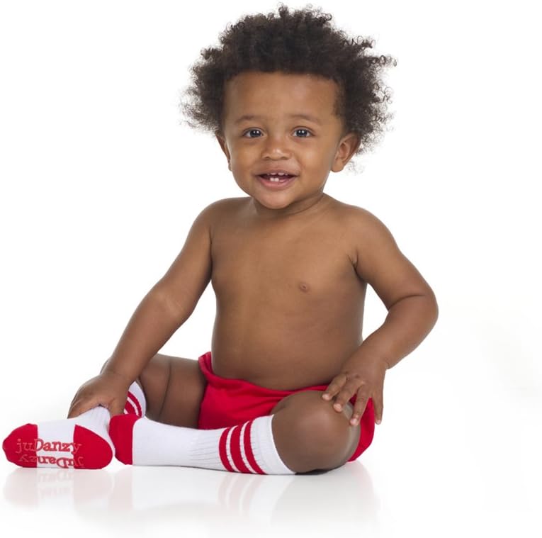 Stretchable delicate socks are simple on, simple off so youngsters can costume themselves.