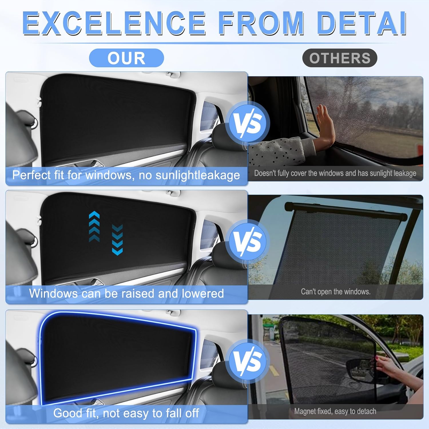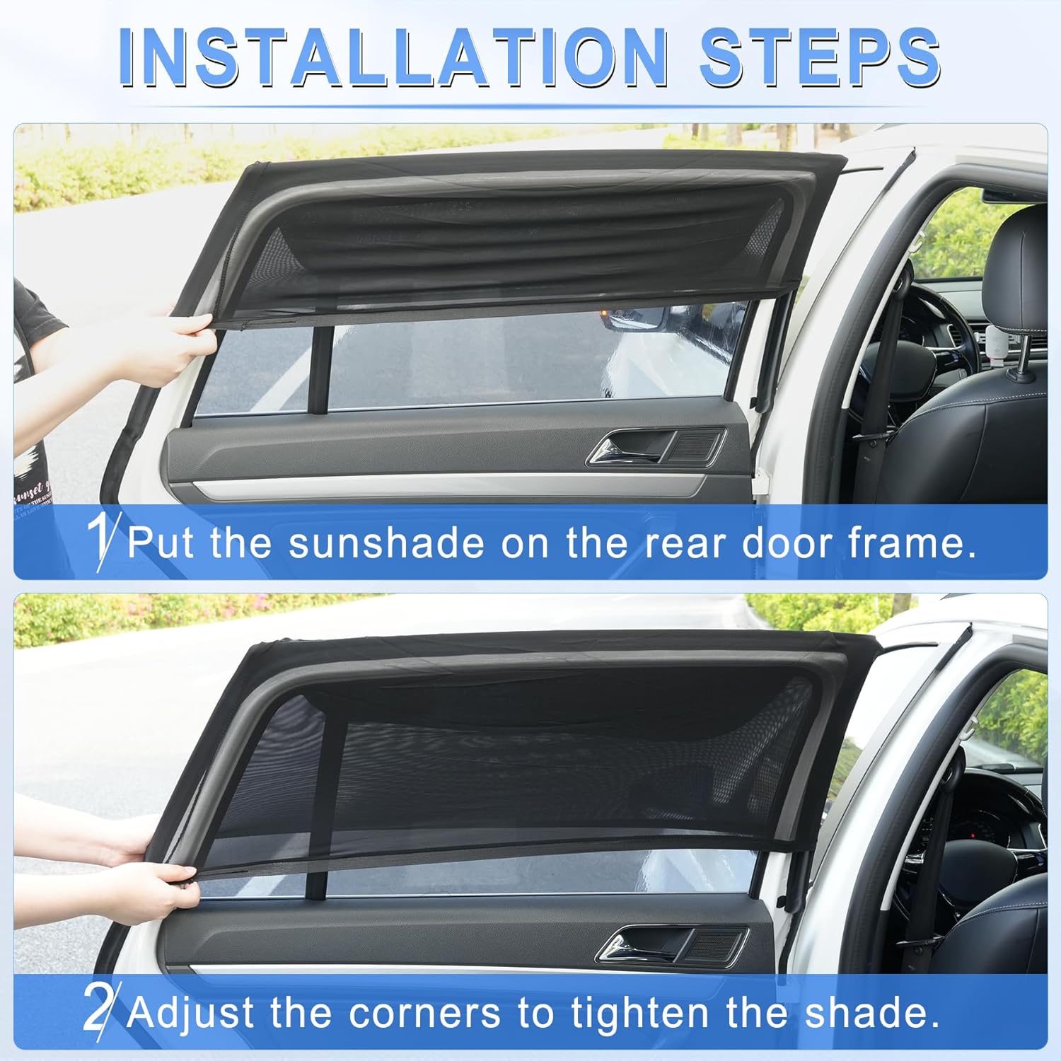 ćDouble layered breathable mesh material, absolutely maskingćAdopting distinctive double-layer weaving expertise: the outer black mesh can block 99% of seen mild, stopping overheating contained in the automobile, whereas the internal breathable layer can preserve airflow circulation. You may take pleasure in a mild breeze whereas avoiding direct daylight whereas opening the automobile window