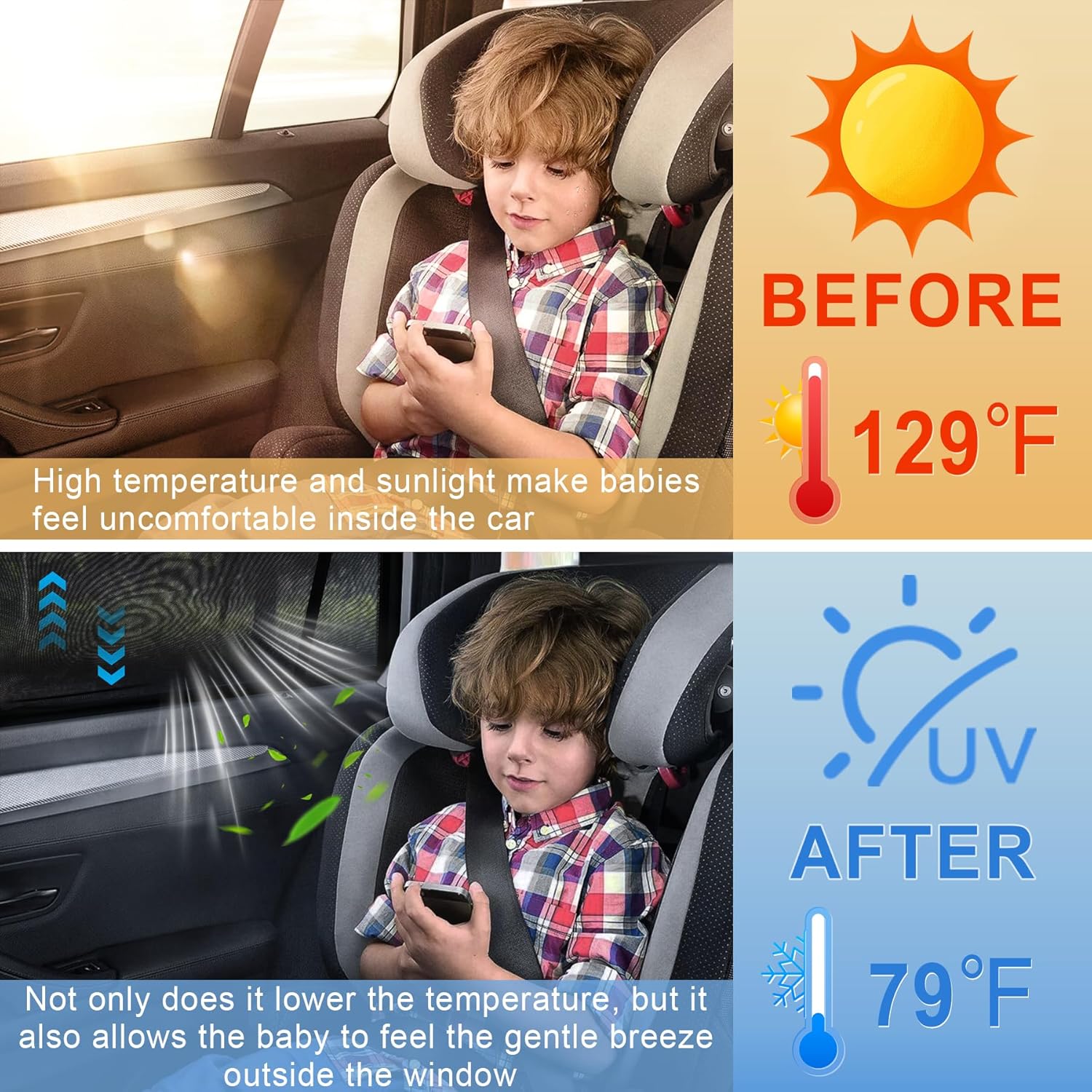 Our automobile curtains are manufactured from a excessive elasticity spandex mix, offering navy grade 97% UV blocking whereas defending the privateness of rear passengers. They’re excellent for households with kids or those that need to relaxation within the automobile
