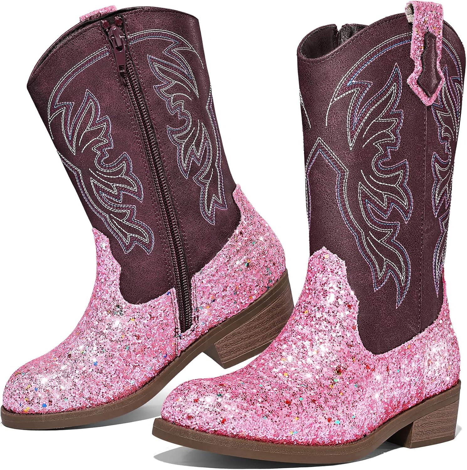K KomForme Girls Cowgirl Boots Mid Calf Glitter Cowboy Boots Western Round-Toe Riding Shoes (Toddler/Little Kid/Big Kid)
