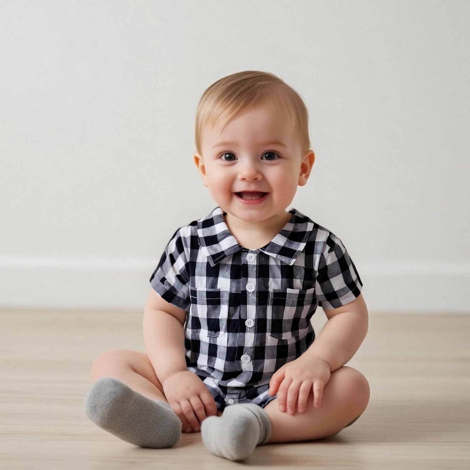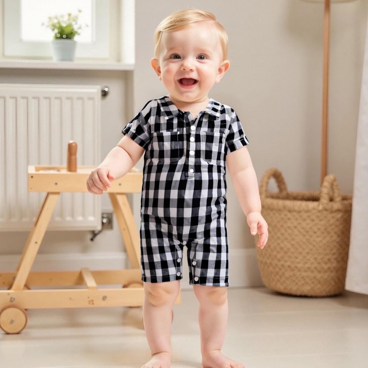 Karuedoo New child Child Boy Summer season Garments Plaid Shirt Romper Brief Sleeve Jumpsuit Button Collared Bodysuit One-Piece Outfit