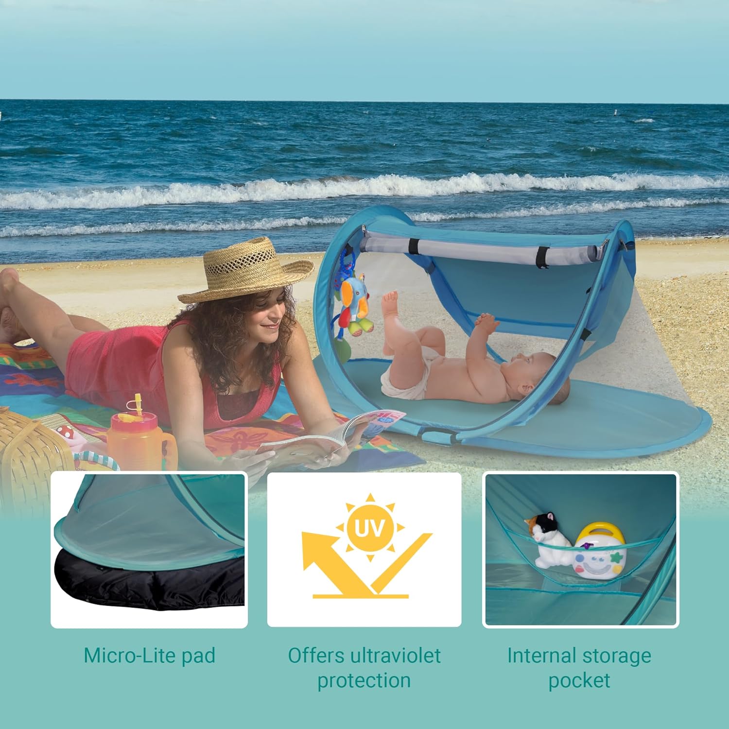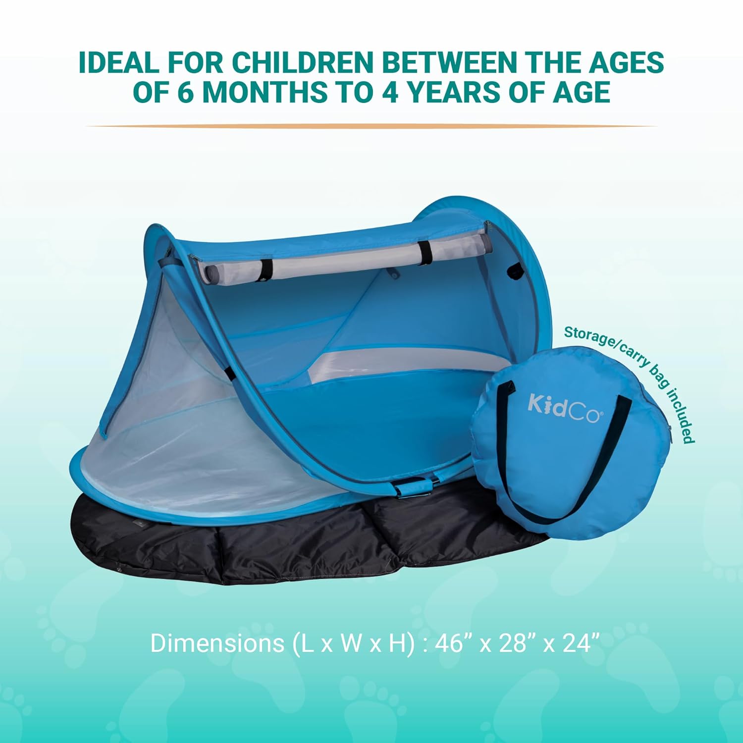 PORTABLE POP-UP TRAVEL tent: This light-weight (2.6 lbs) tent unfolds in seconds, creating a comfortable & breathable mesh haven in your infant (46”L x 24”H x 28”W open). With toy loops, roll up solar shade, & anchor straps, it’s good for outside!