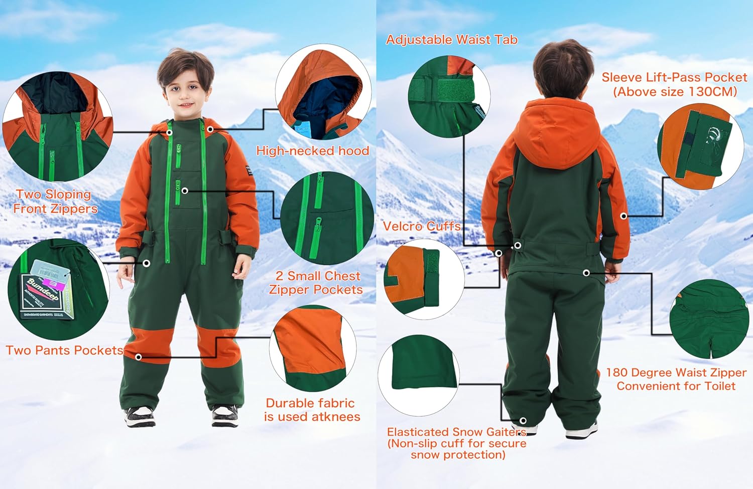 SNBOCON Children Boys Women Excessive Collar Hood Double Zipper One Piece Ski Fits