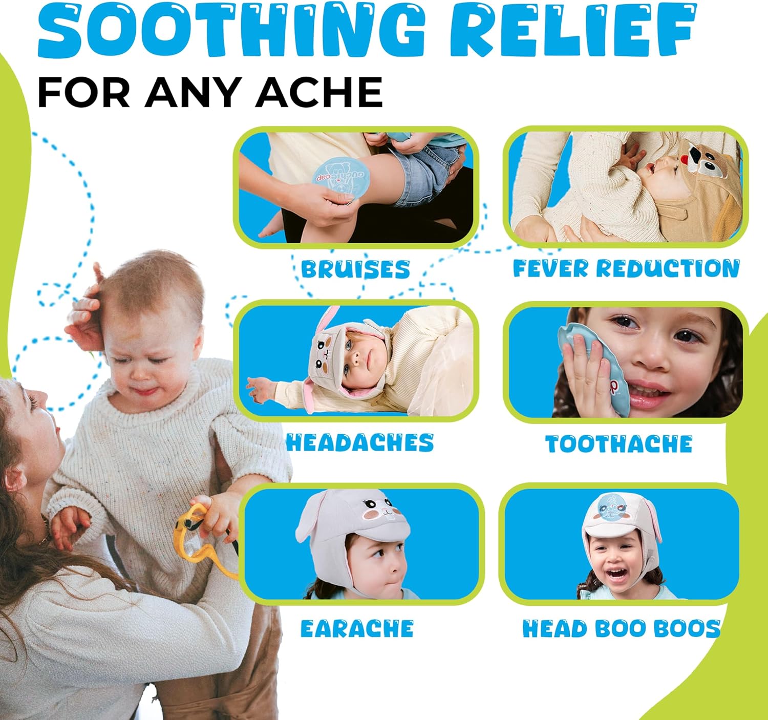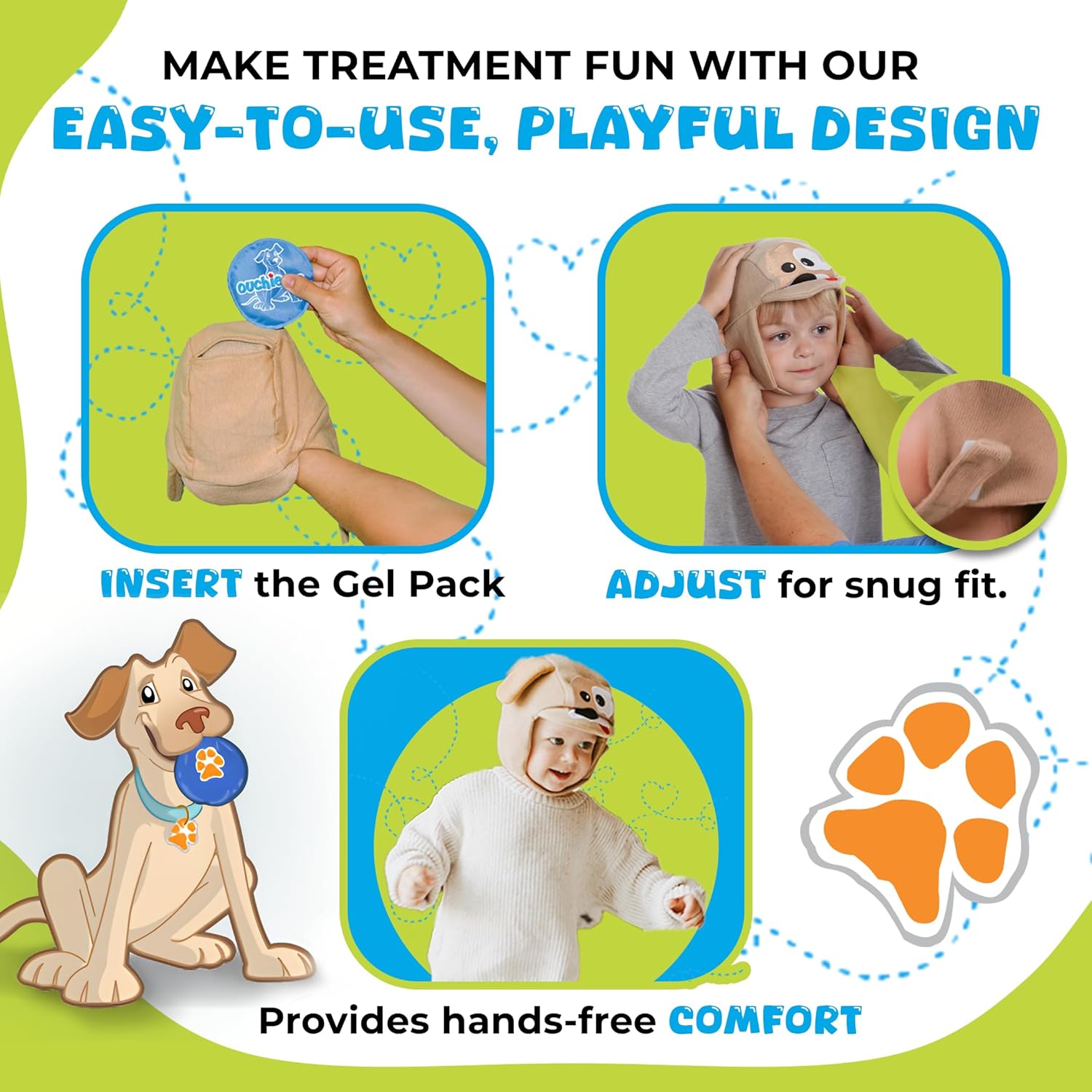 Mothers Necessities: Our youngsters ice packs are good for brand spanking new mothers, child showers, or daycare! comes with machine-washable ouchiecap with an adjustable chin strap for a safe match. Calm down mother! let toby the pet handle your children ouchies.