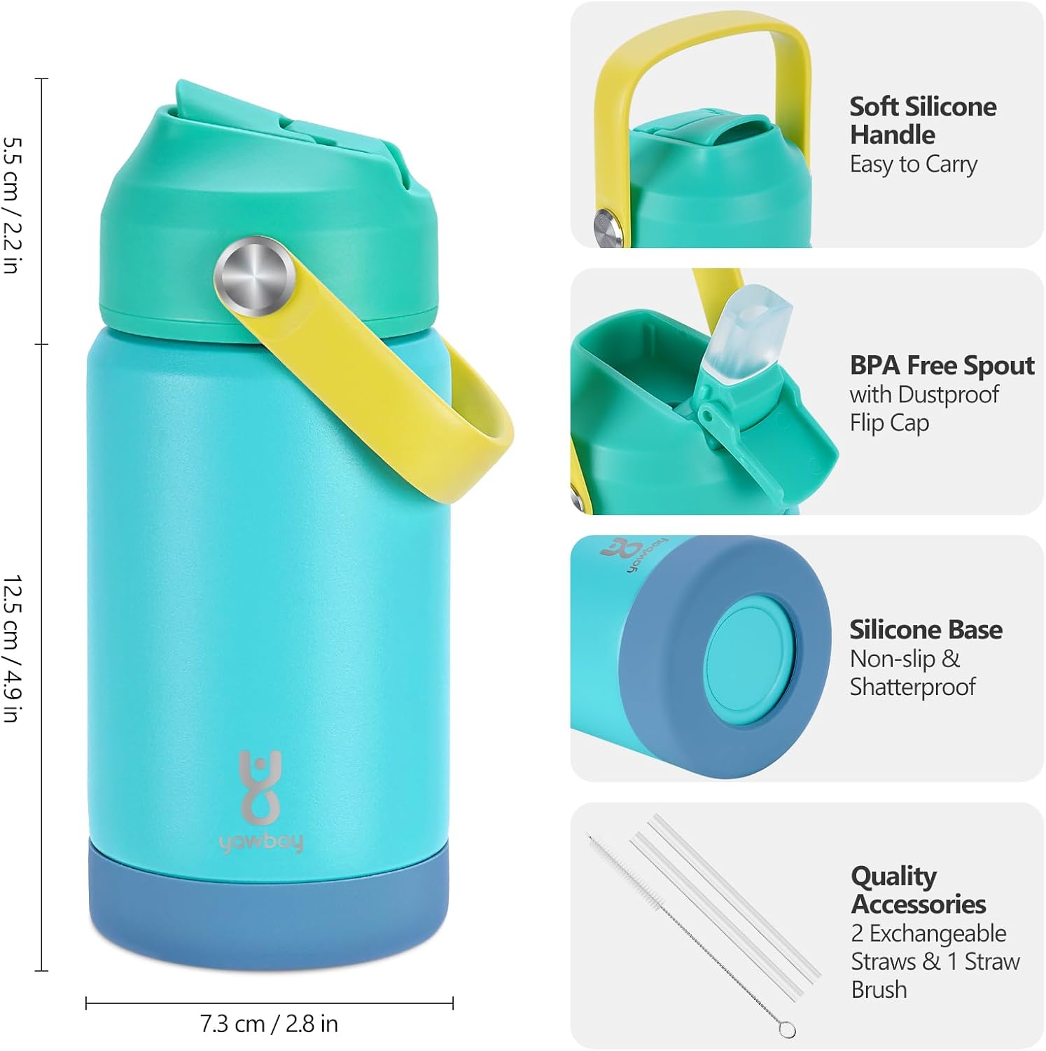 Sturdy and Protected Supplies: Crafted from 304 chrome steel, our water bottle isn’t solely constructed to final but additionally freed from dangerous substances like BPA, lead, and PAES, you possibly can relaxation assured understanding that your kid’s well being is protected whereas they keep hydrated all through the day.